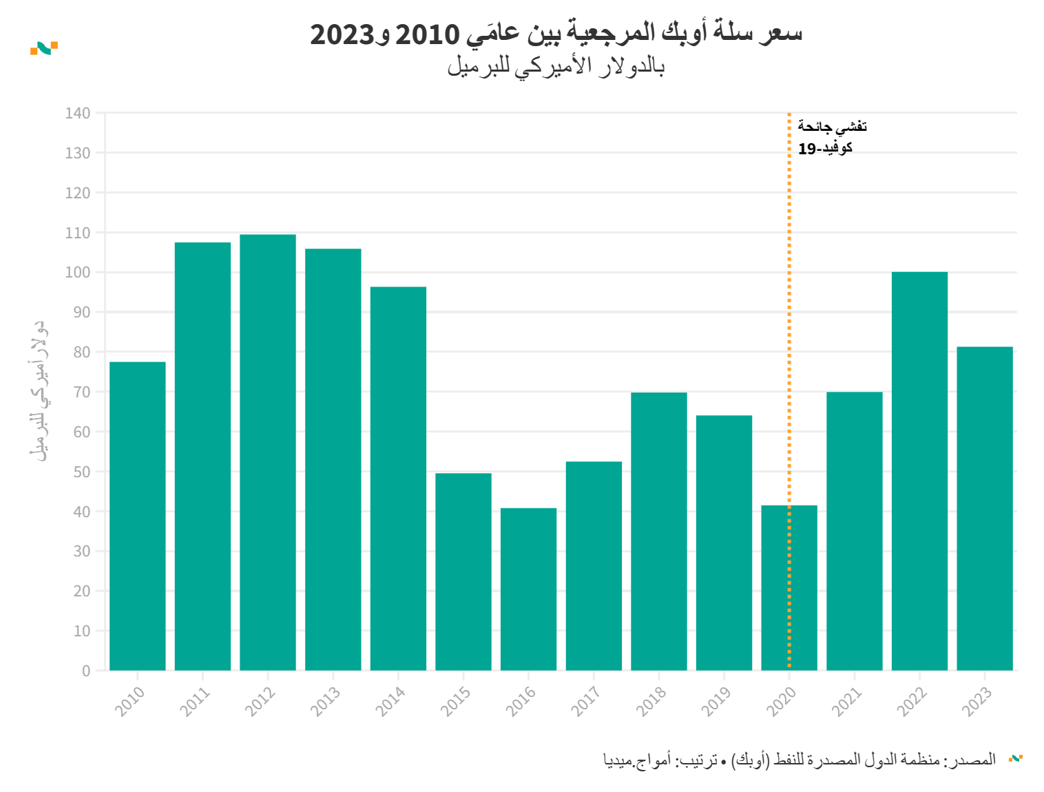 سعر سلة أوبك المرجعية بين عامَي 2010 و2023