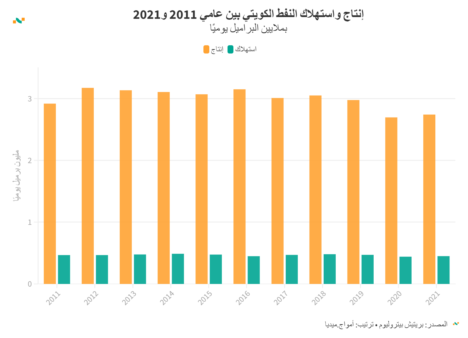 إنتاج واستهلاك النفط الكويتي بين عامي 2011 و2021
