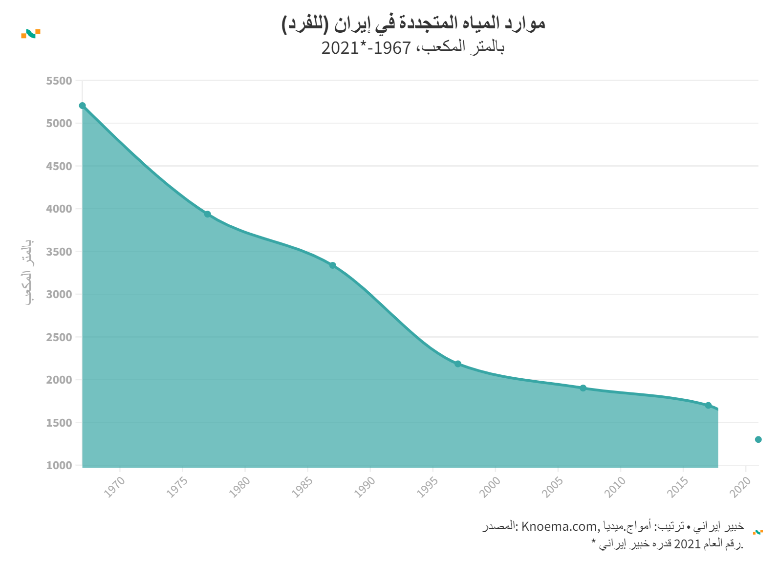 موارد المياه المتجددة في إيران (للفرد)