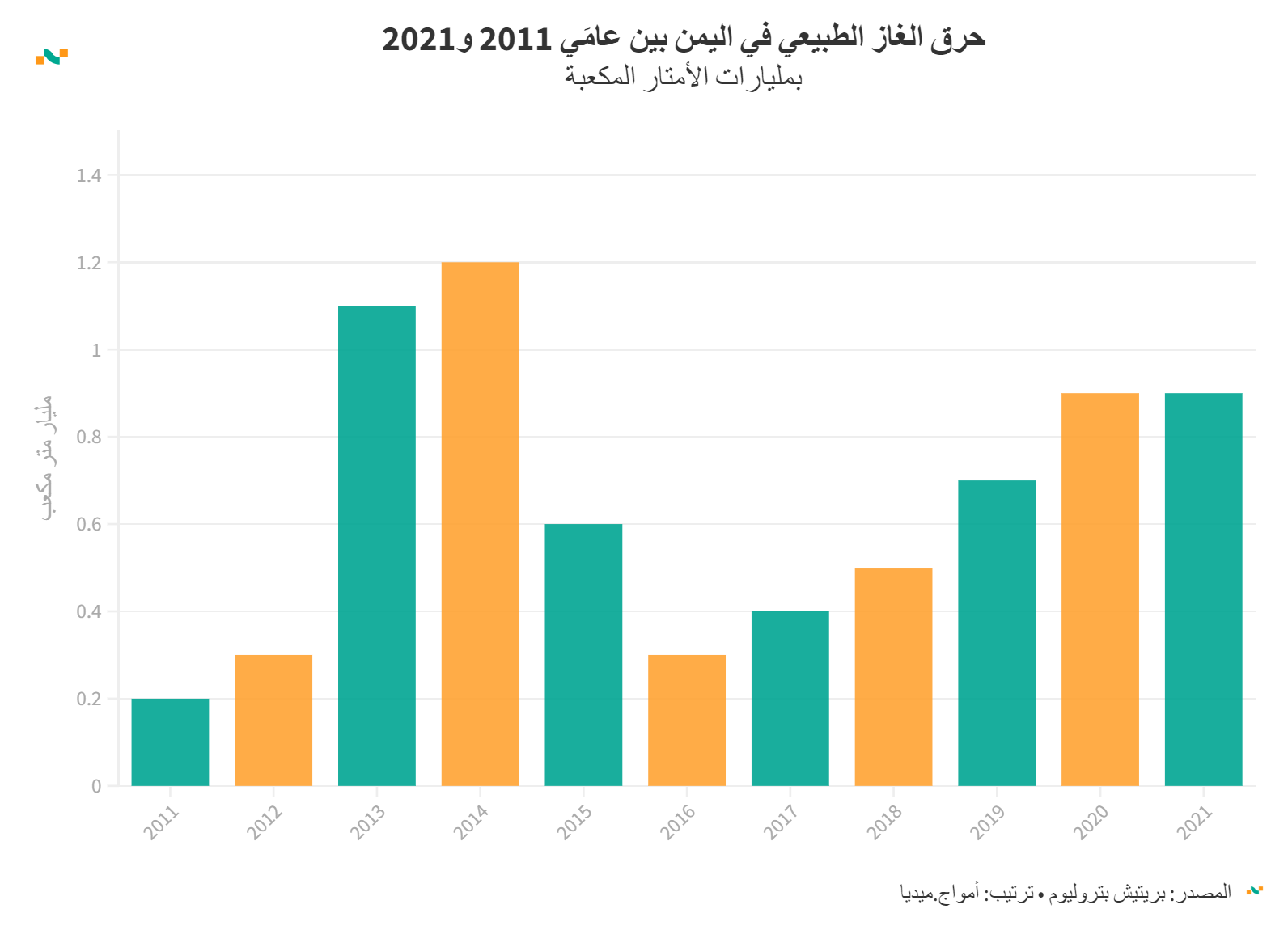 حرق الغاز الطبيعي في اليمن بين عامَي 2011 و2021