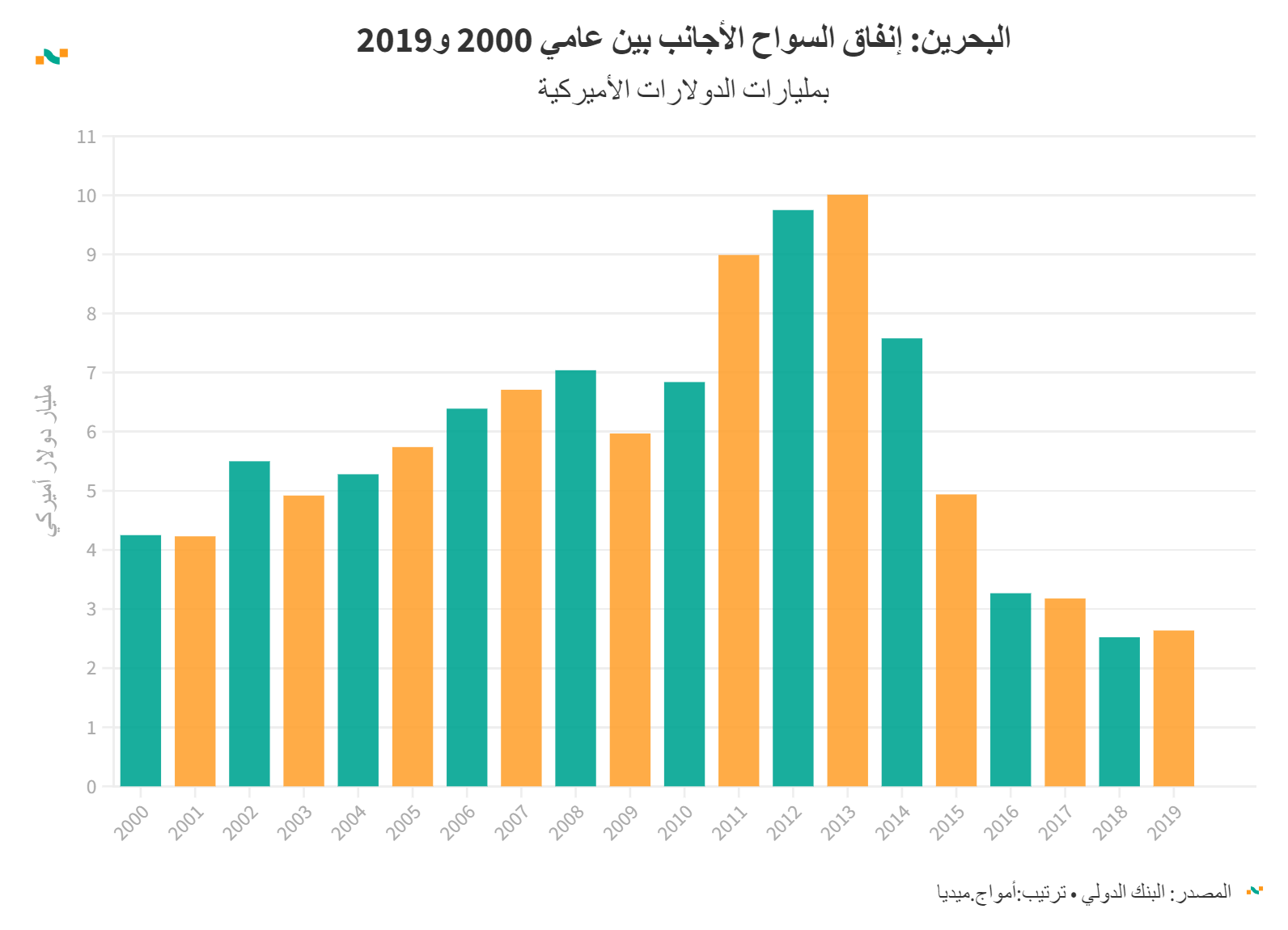 البحرين: إنفاق السواح الأجانب بين عامي 2000 و2019
