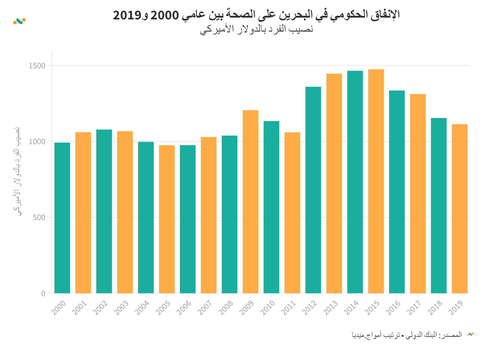 الإنفاق الحكومي في البحرين على الصحة بين عامي 2000 و2019