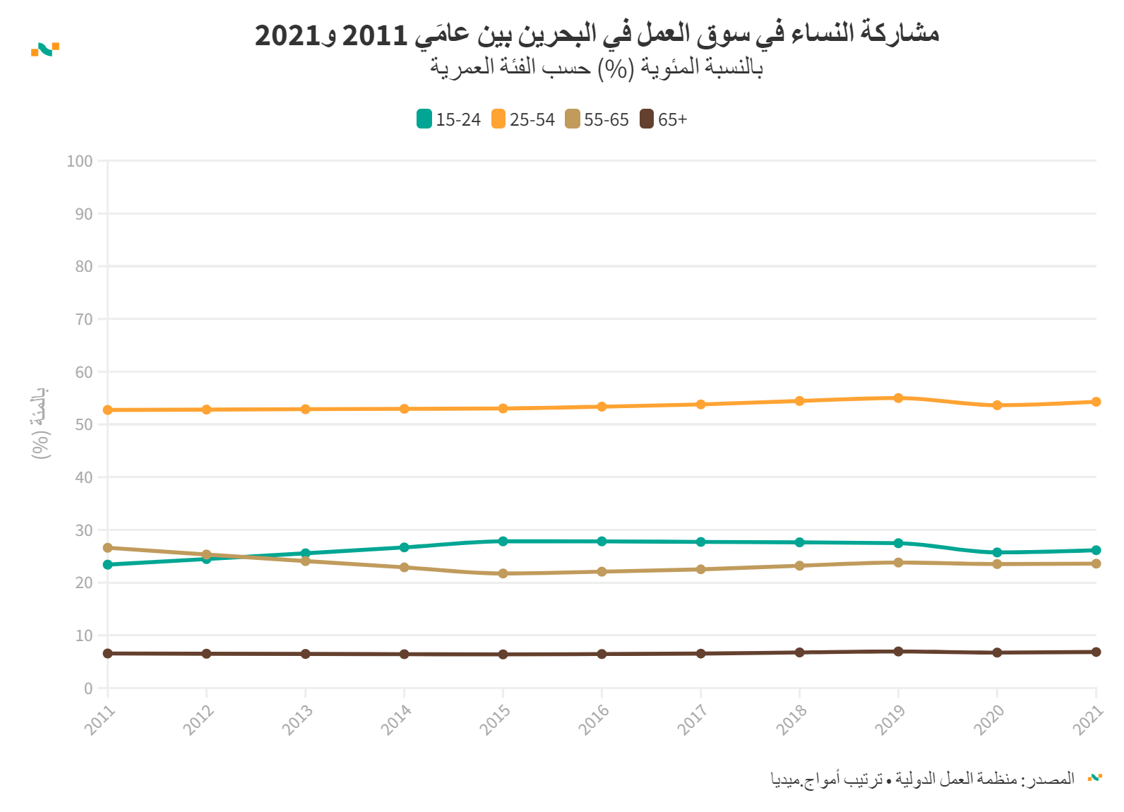 مشاركة النساء في سوق العمل في البحرين بين عامَي 2011 و2021