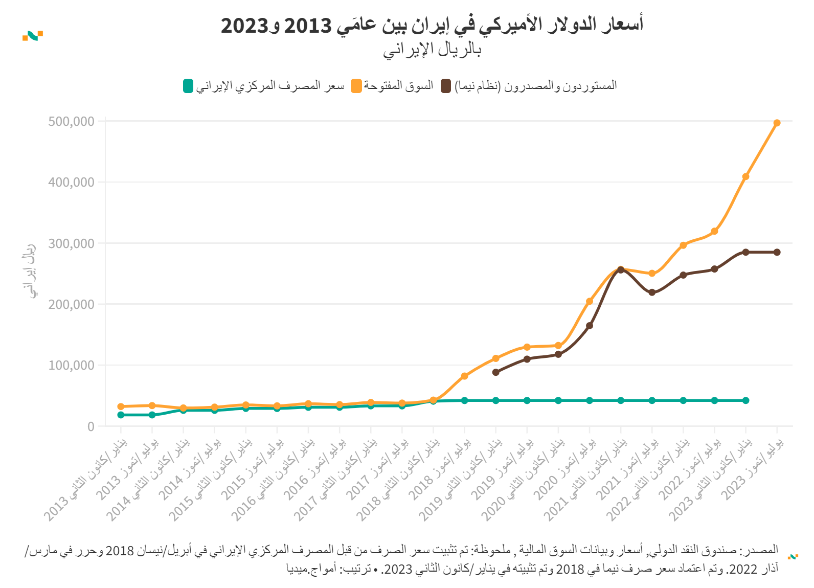 أسعار الدولار الأميركي في إيران بين عامَي 2013 و2023