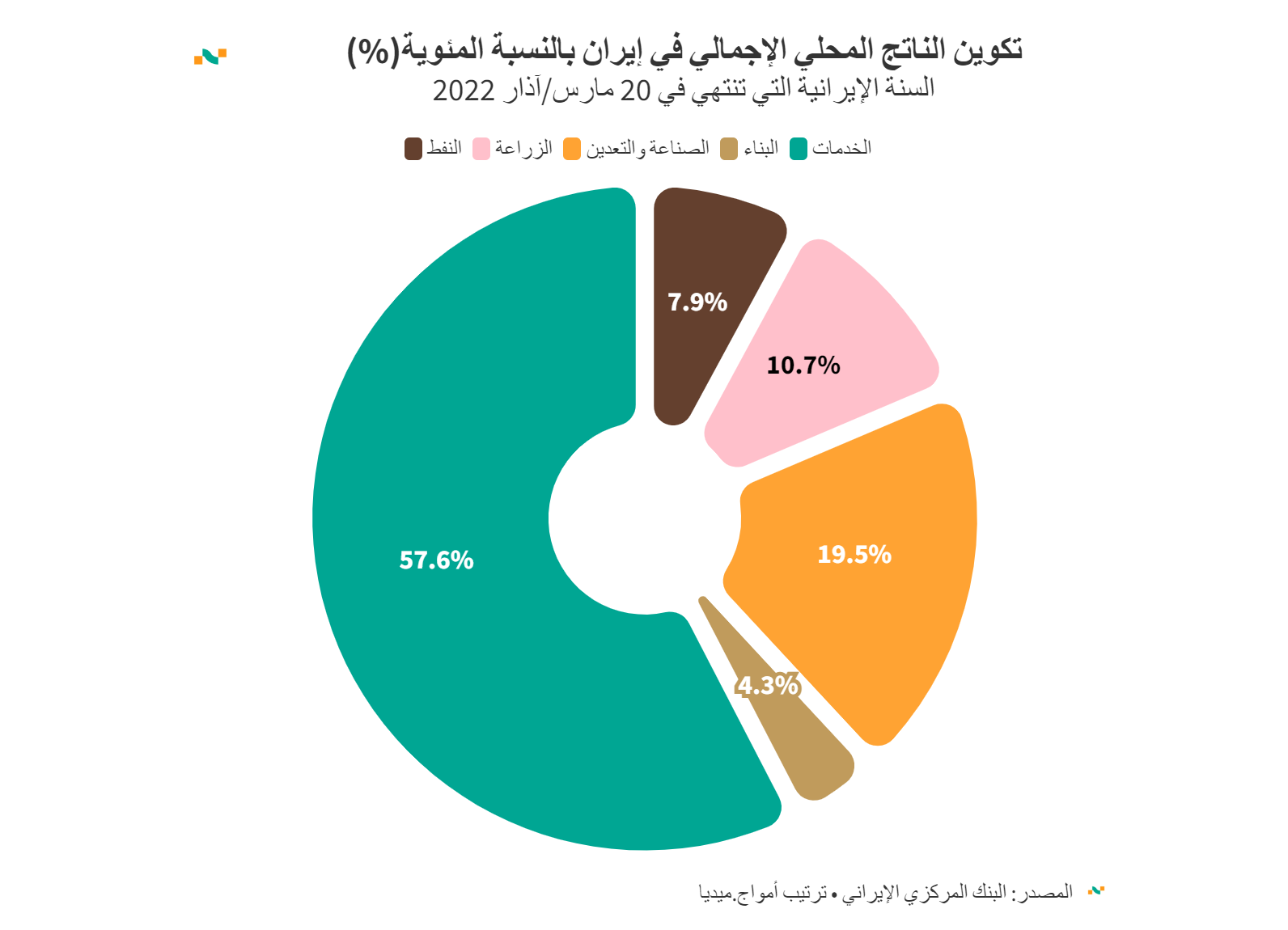 (%)تكوين الناتج المحلي الإجمالي في إيران بالنسبة المئوية
