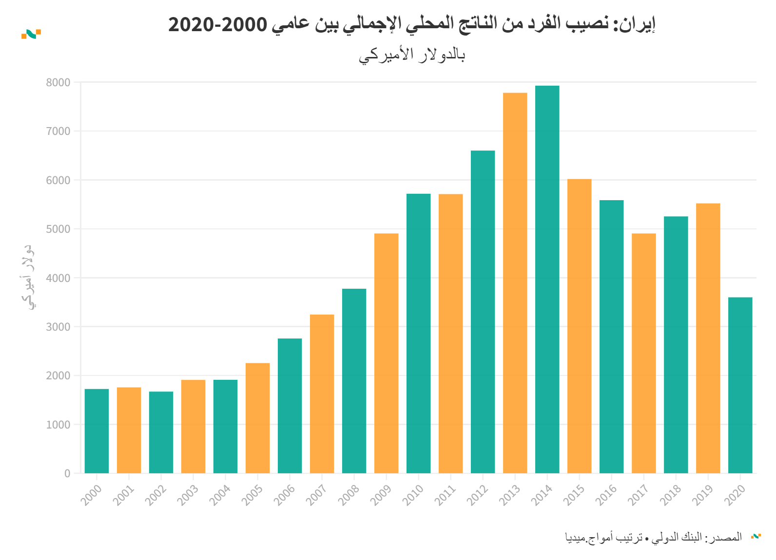 2020-2000 إيران: نصيب الفرد من الناتج المحلي الإجمالي بين عامي