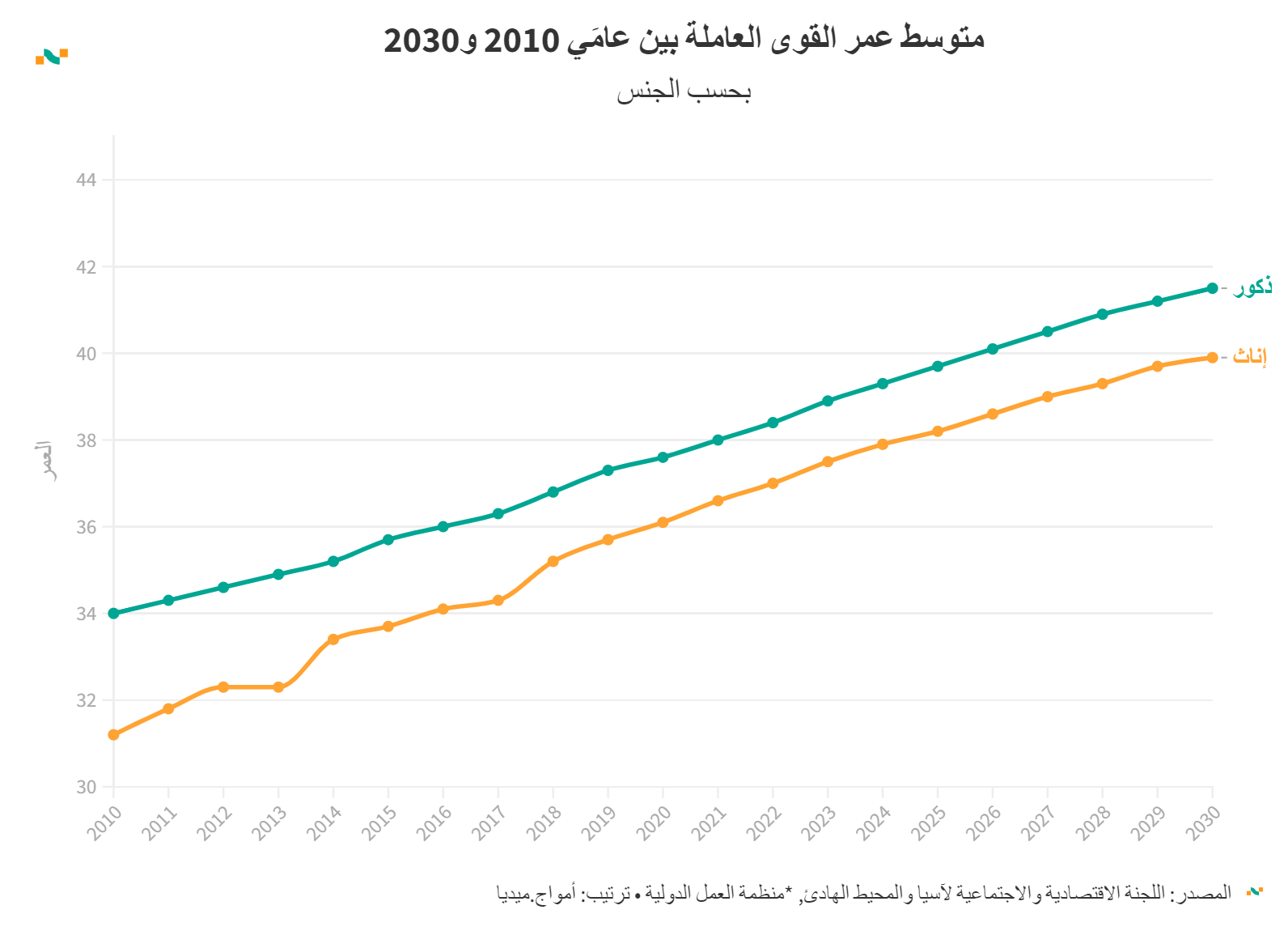 متوسط عمر القوى العاملة بين عامَي 2010 و2030