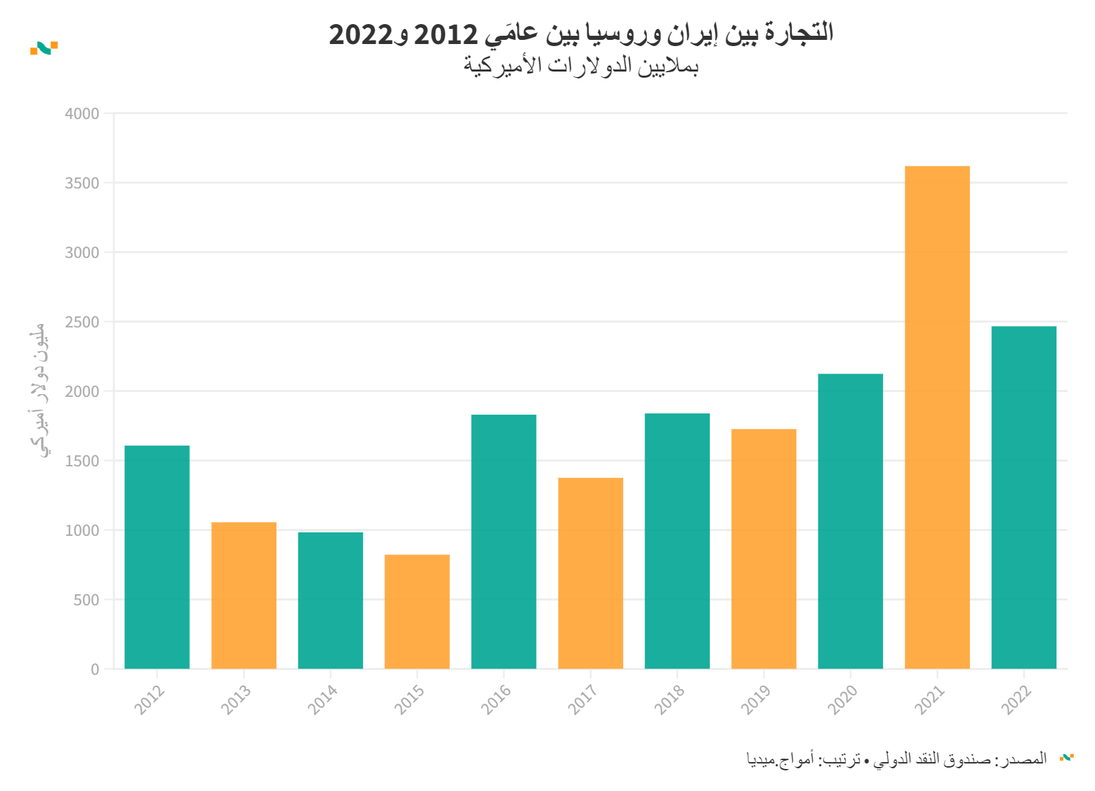 تجارة إيران مع روسيا وأوكرانيا بين عامي 2012 و2022