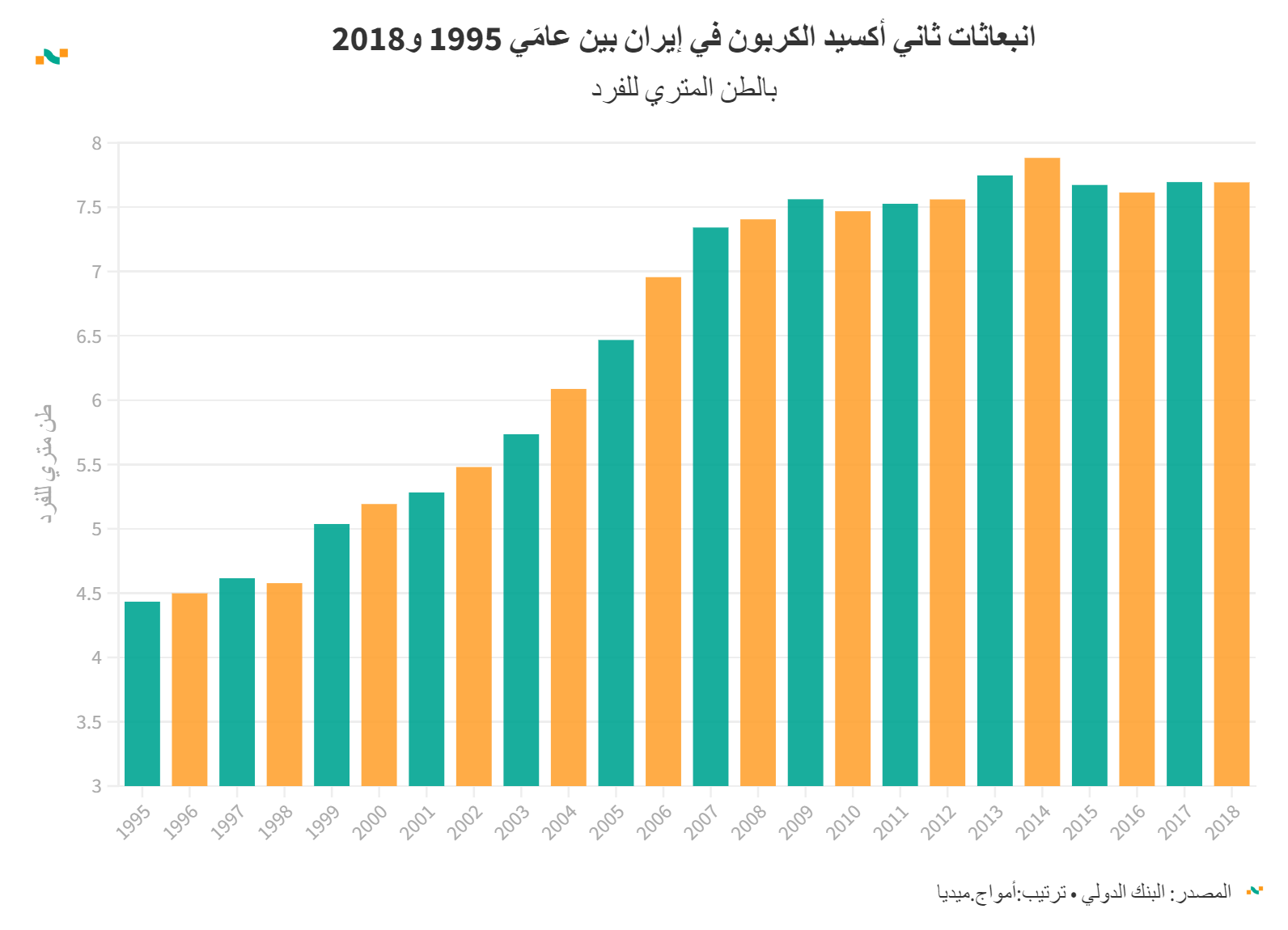 انبعاثات ثاني أكسيد الكربون في إيران بين عامَي 1995 و2020
