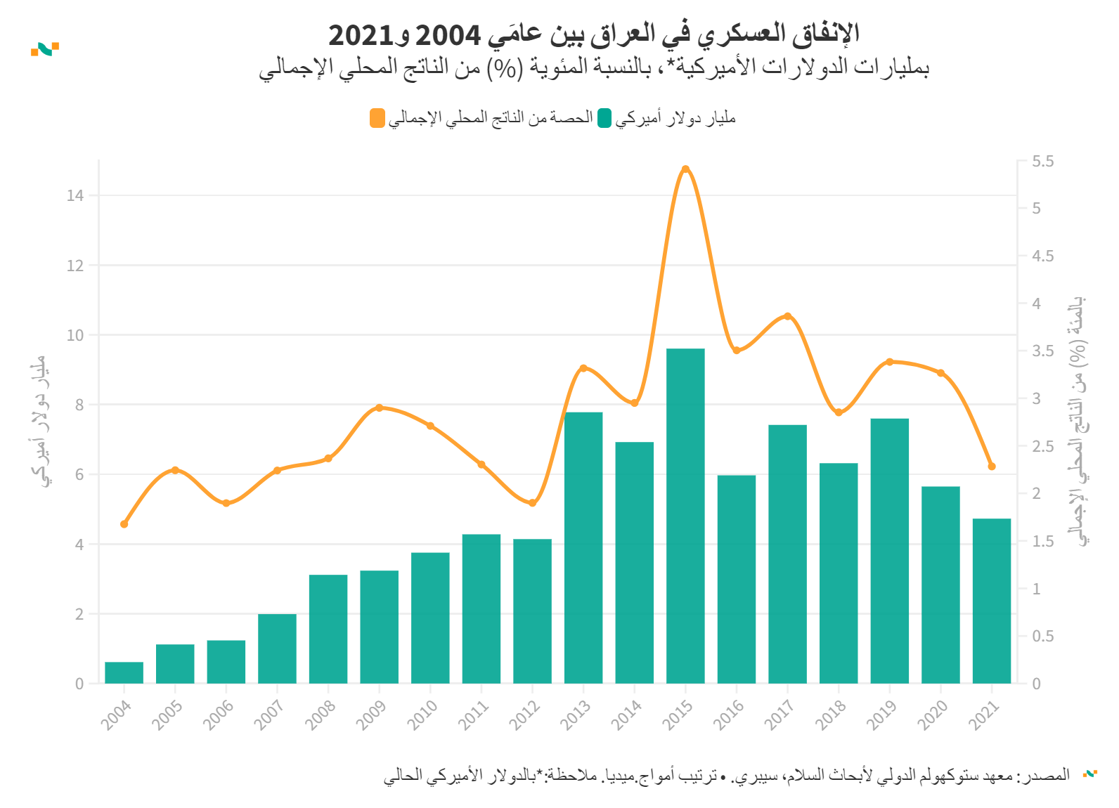 الإنفاق العسكري في العراق بين عامَي 2004 و2021