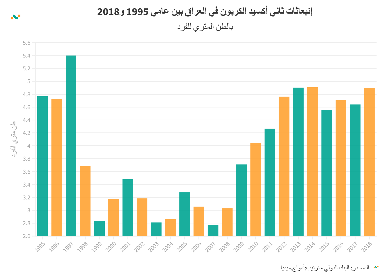 إنبعاثات ثاني أكسيد الكربون في العراق بين عامي 1995 و2018