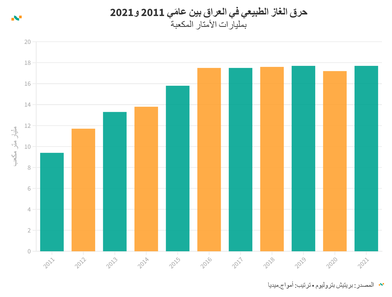 حرق الغاز الطبيعي في العراق بين عامَي 2011 و2021
