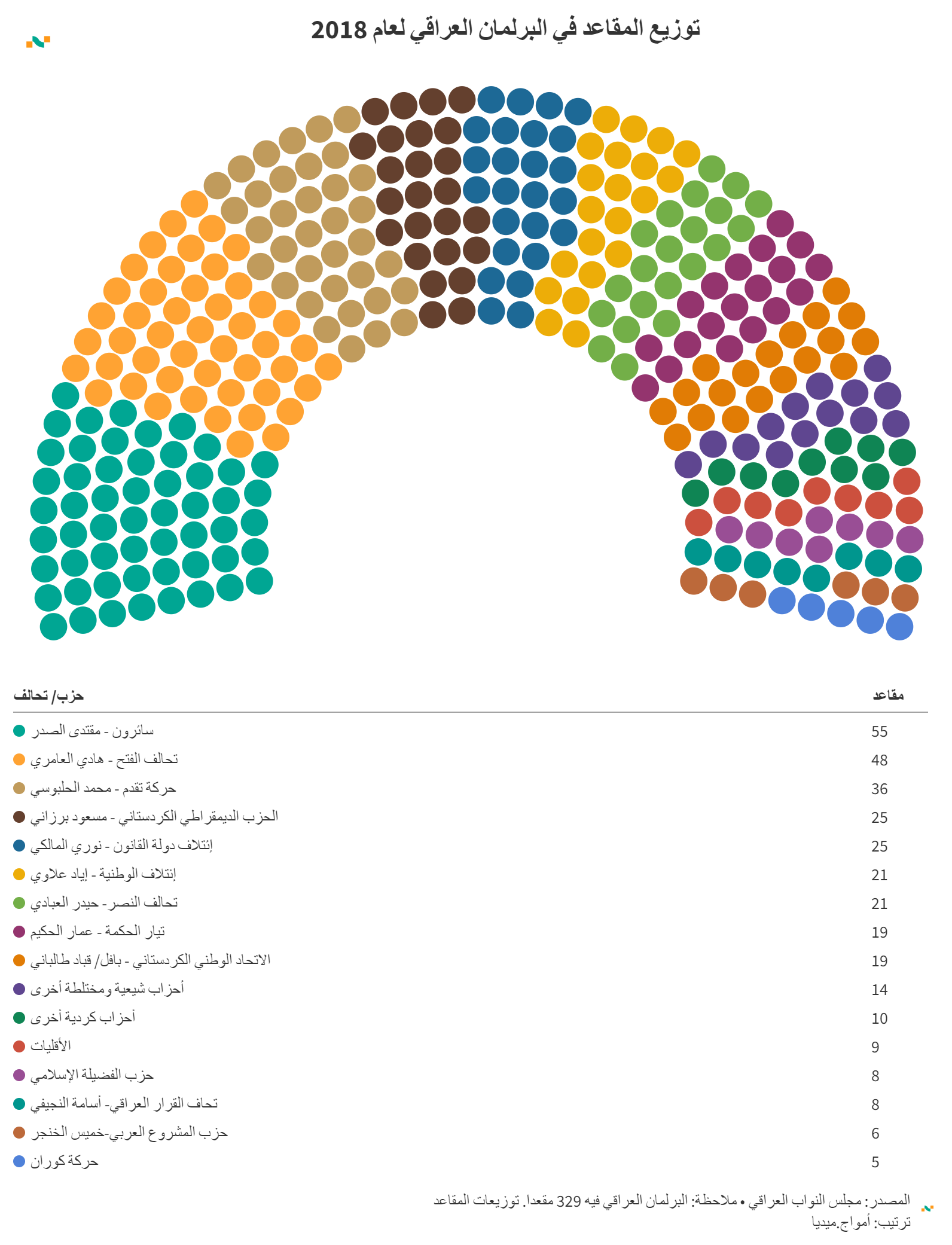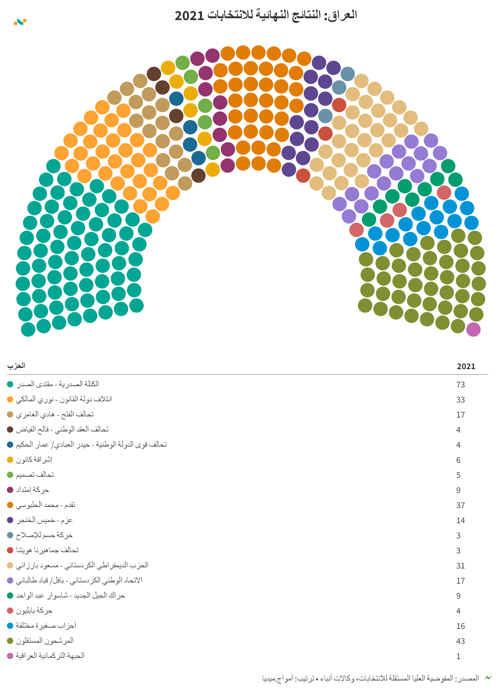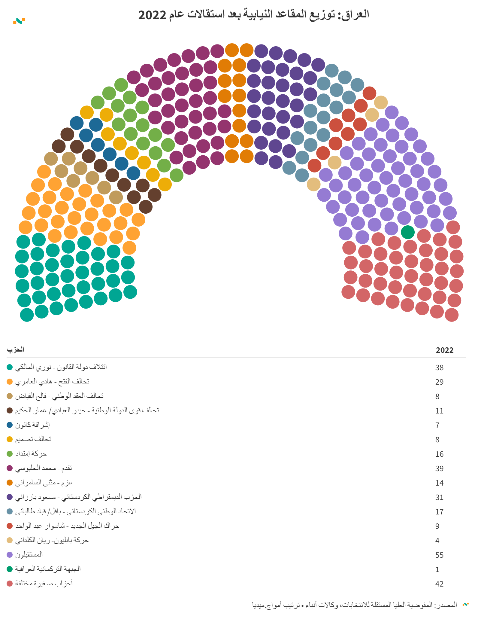 العراق: توزيع المقاعد النيابية بعد استقالات عام 2022