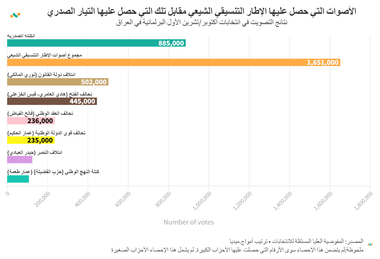 الأصوات التي حصل عليها الإطار التنسيقي الشيعي مقابل تلك التي حصل عليها التيار الصدري