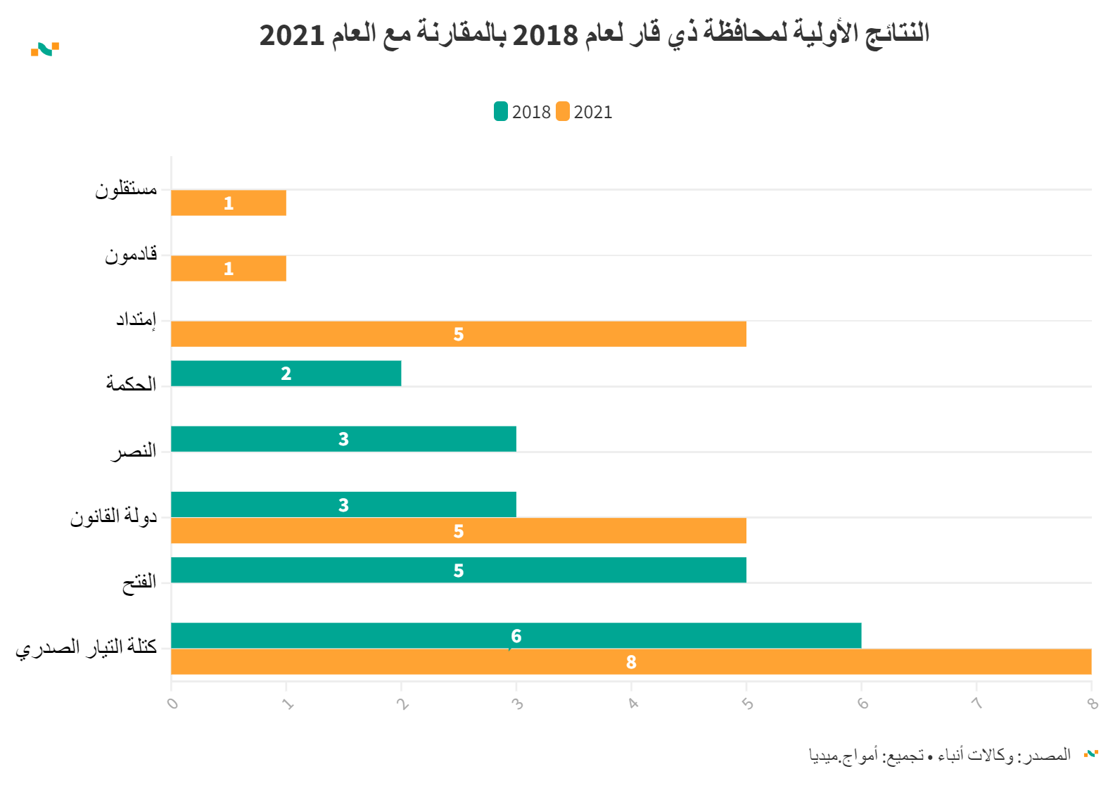 النتائج الأولية لمحافظة ذي قار لعام 2018 بالمقارنة مع العام 2021