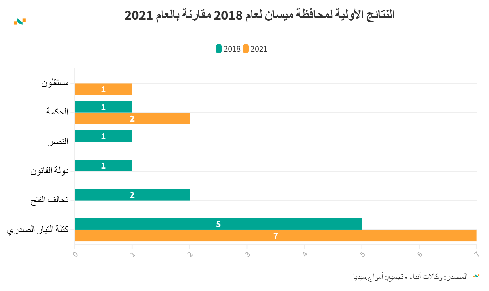 النتائج الأولية لمحافظة ميسان لعام 2018 مقارنة بالعام 2021