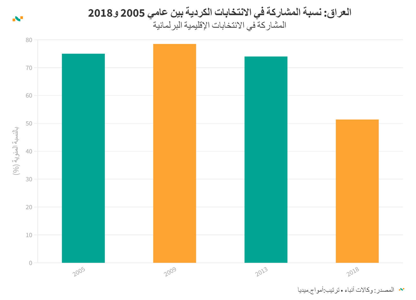العراق: نسبة المشاركة في الانتخابات الكردية بين عامي 2005 و2018