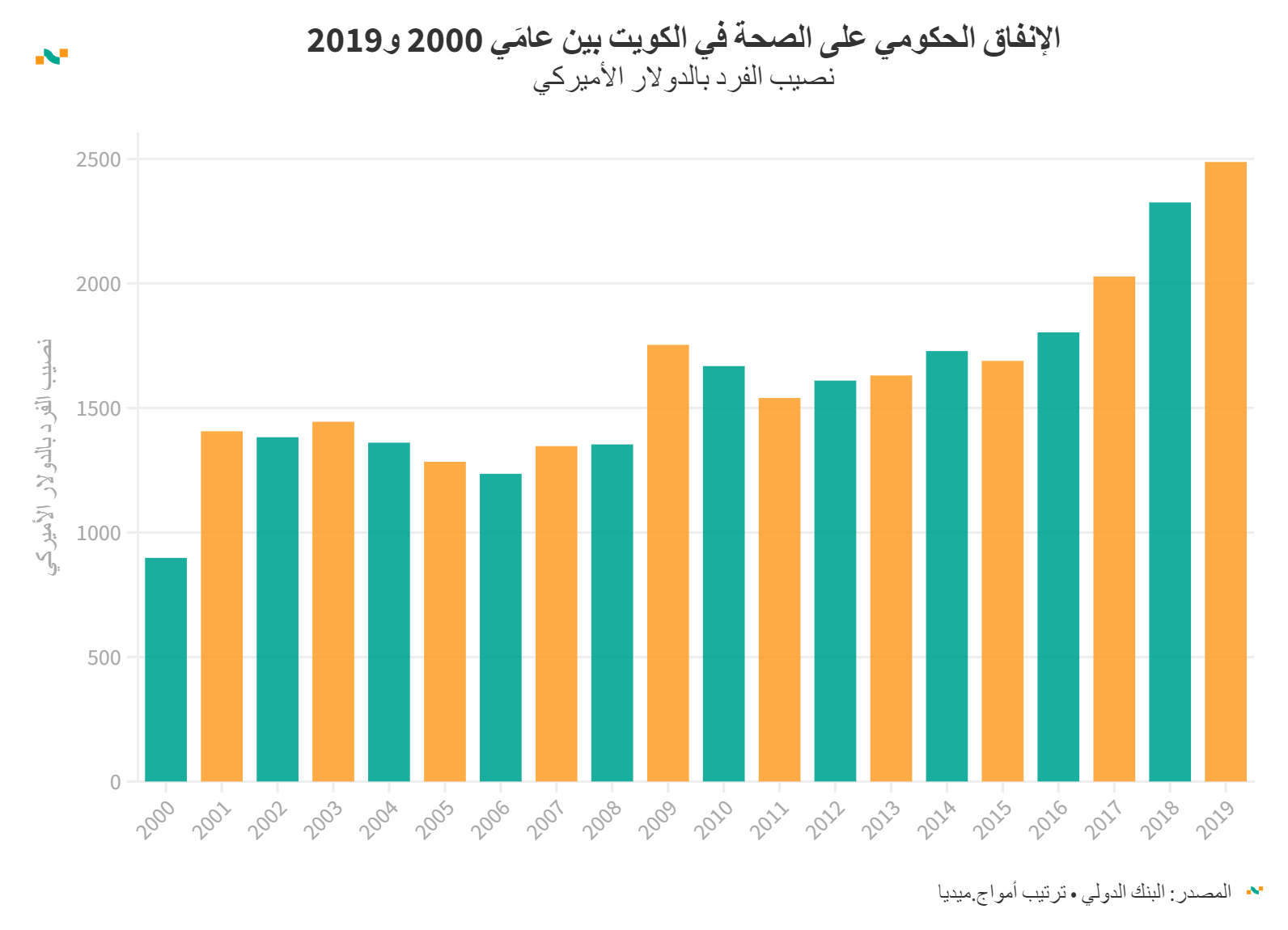 الإنفاق الحكومي على الصحة في الكويت بين عامَي 2000 و2019