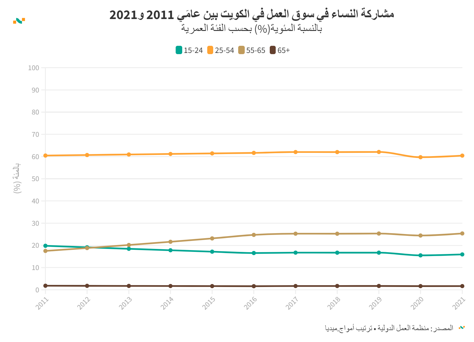 مشاركة النساء في سوق العمل في الكويت بين عامَي 2011 و2021