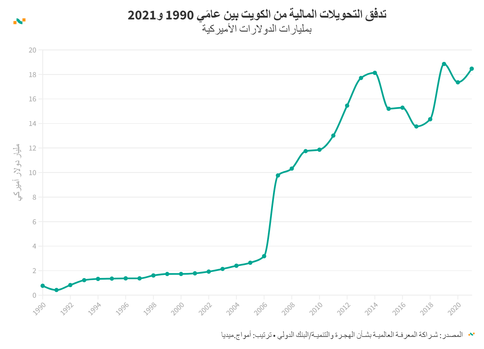 تدفق التحويلات المالية من الكويت بين عامَي 1990 و2021