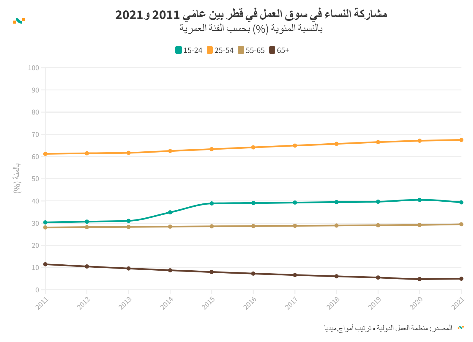 مشاركة النساء في سوق العمل في قطر بين عامَي 2011 و2021
