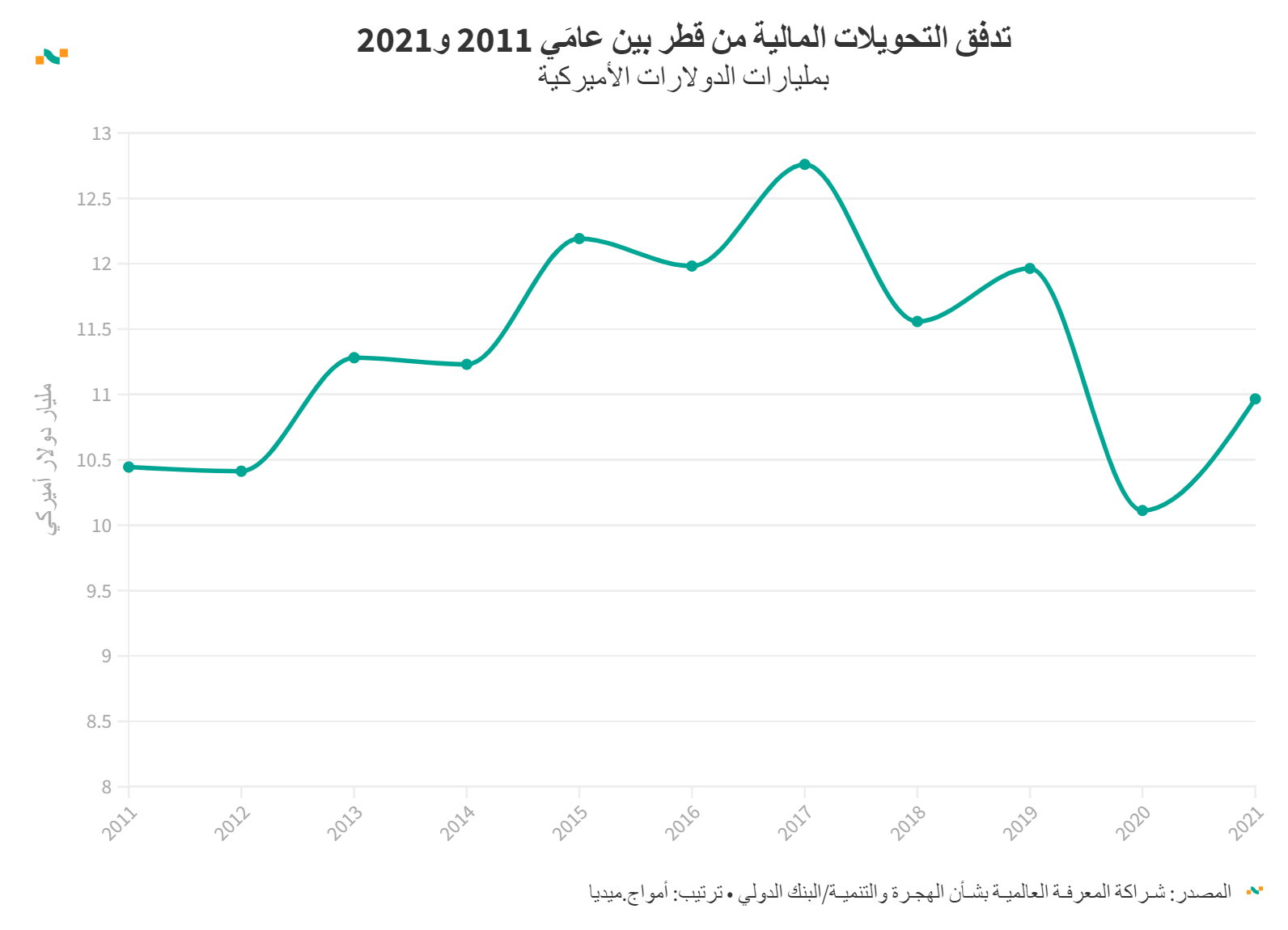 تدفق التحويلات المالية من قطر بين عامَي 2011 و2021
