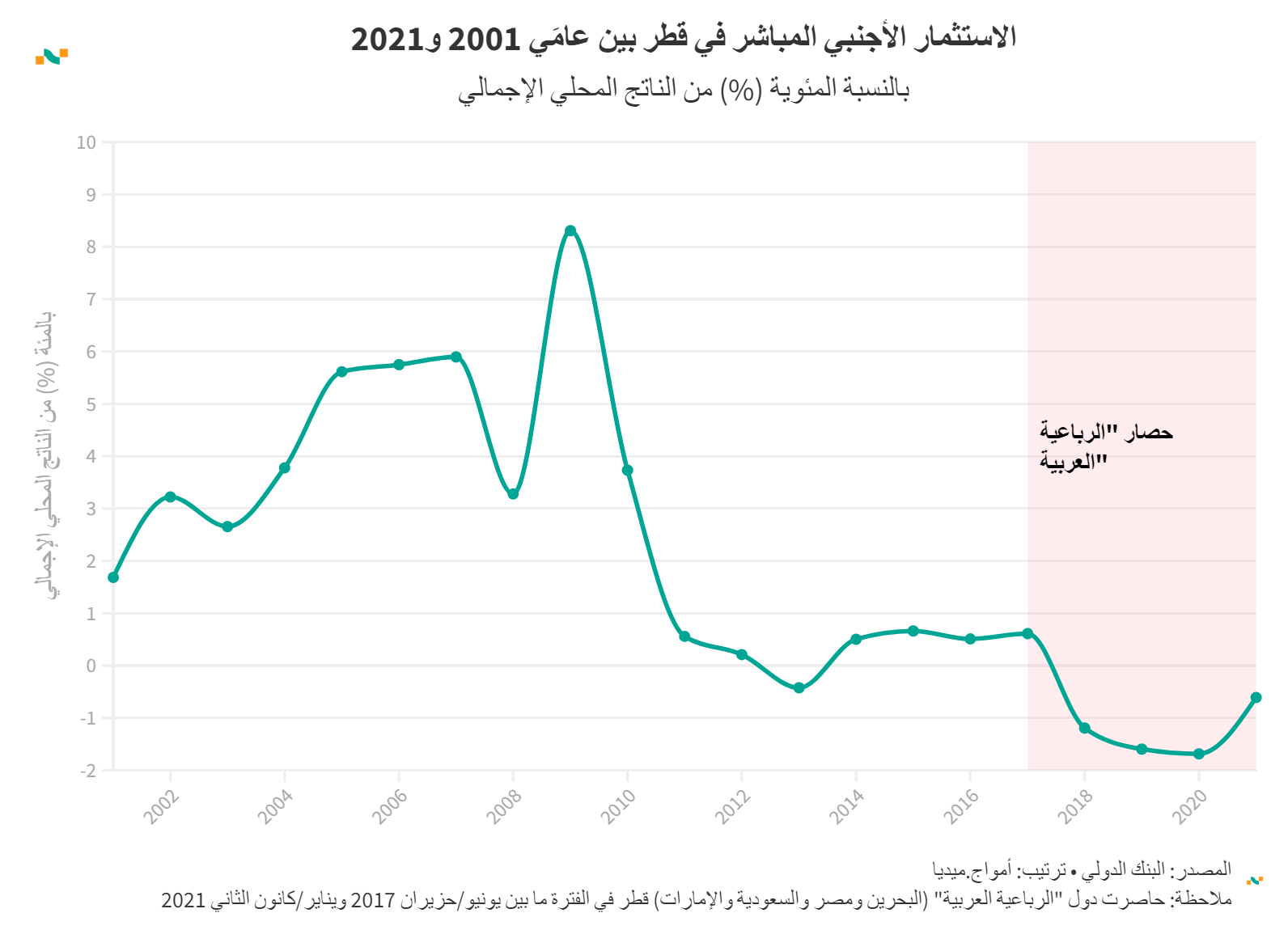 الاستثمار الأجنبي المباشر في قطر بين عامَي 2001 و2021