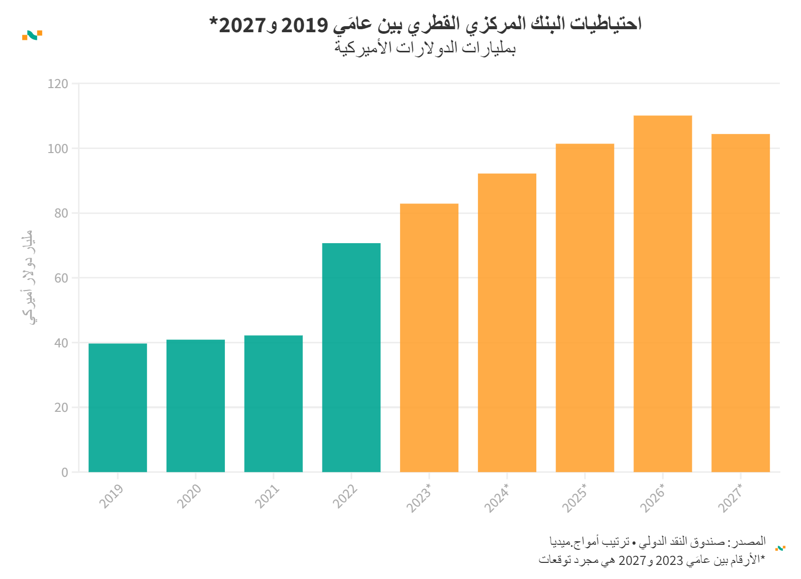 احتياطيات البنك المركزي القطري بين عامَي 2019 و2027*