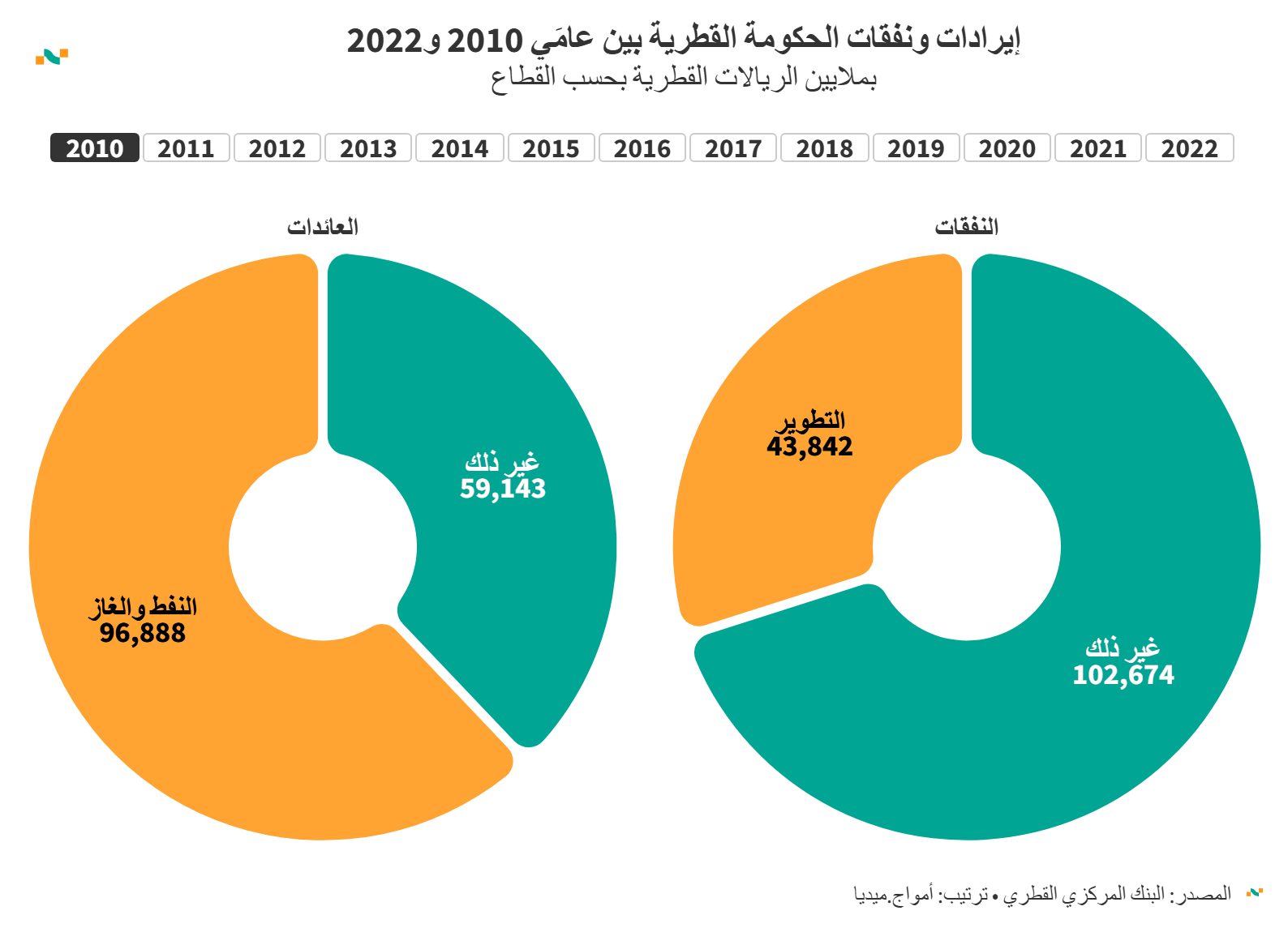 إيرادات ونفقات الحكومة القطرية بين عامَي 2010 و2022
