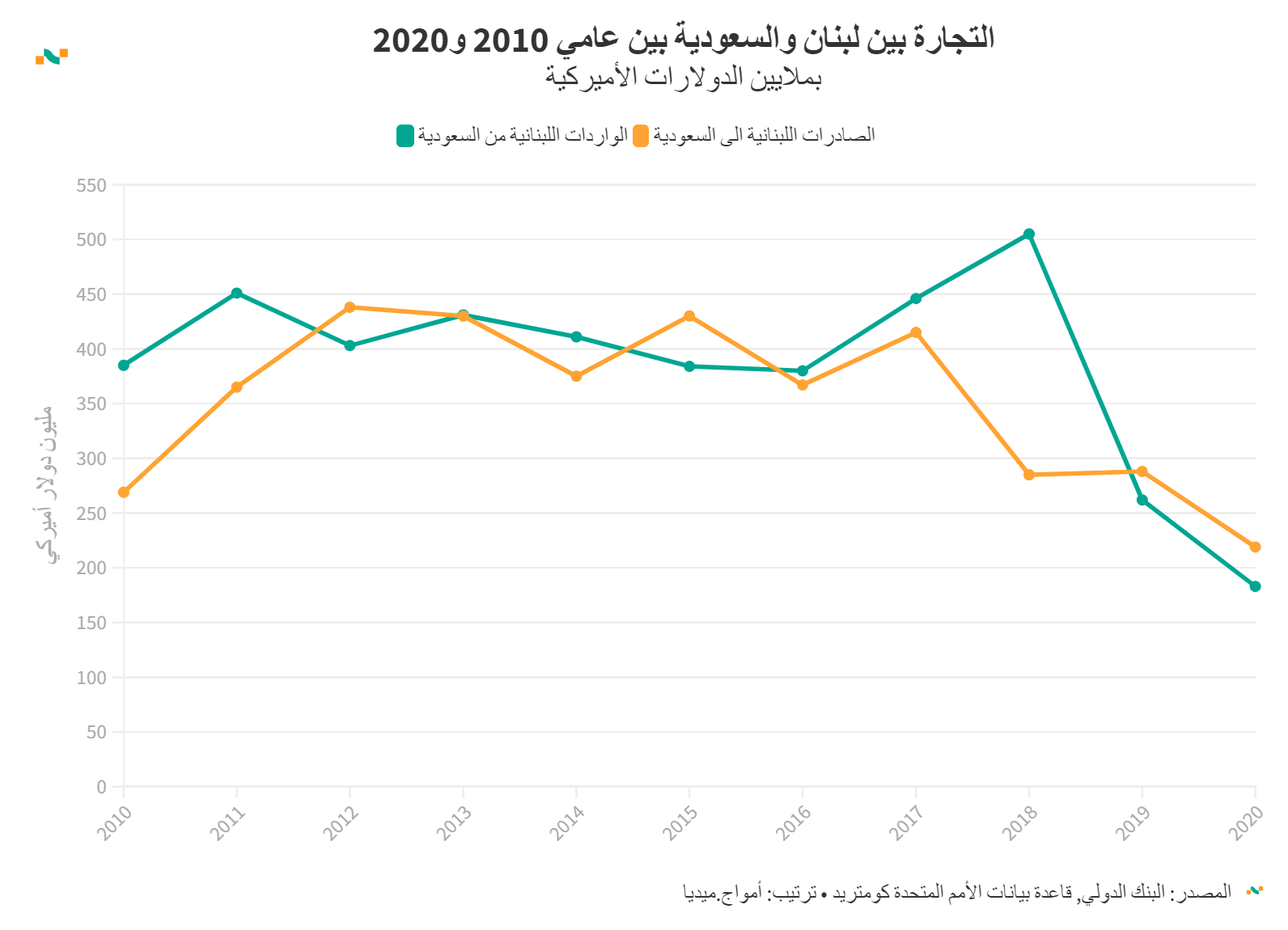 التجارة بين لبنان والسعودية بين عامي 2010 و2020
