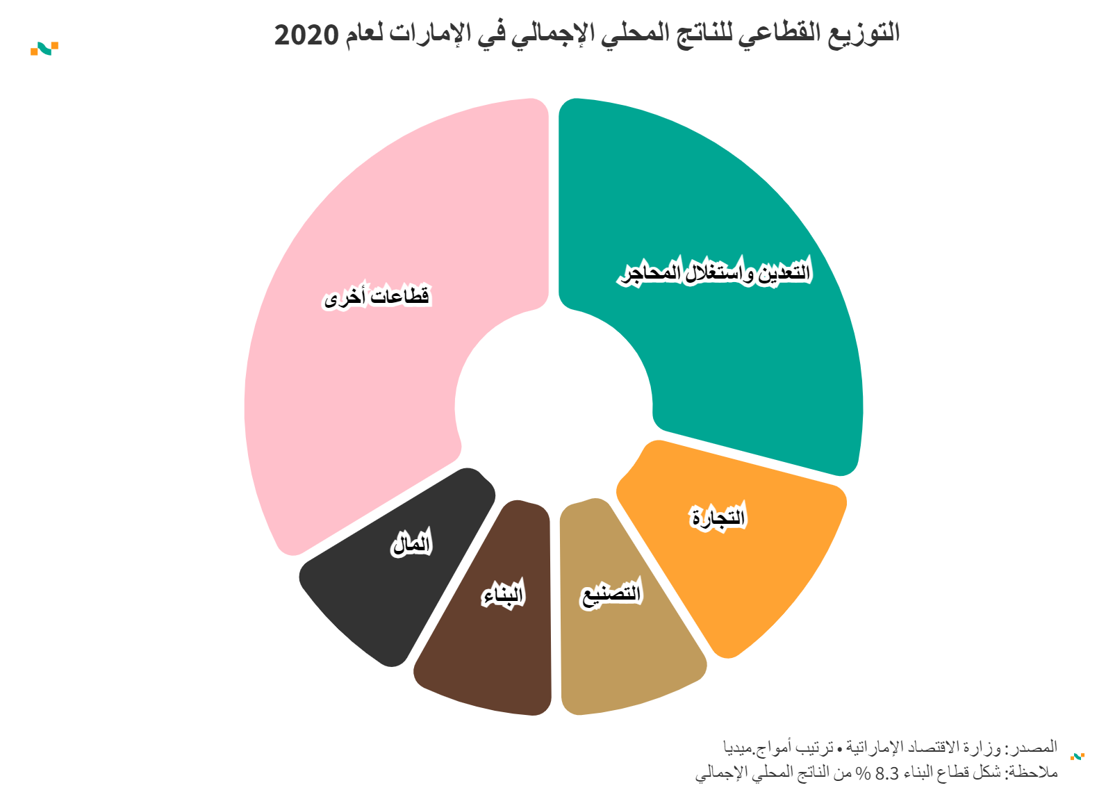 التوزيع القطاعي للناتج المحلي الإجمالي في الإمارات لعام 2020