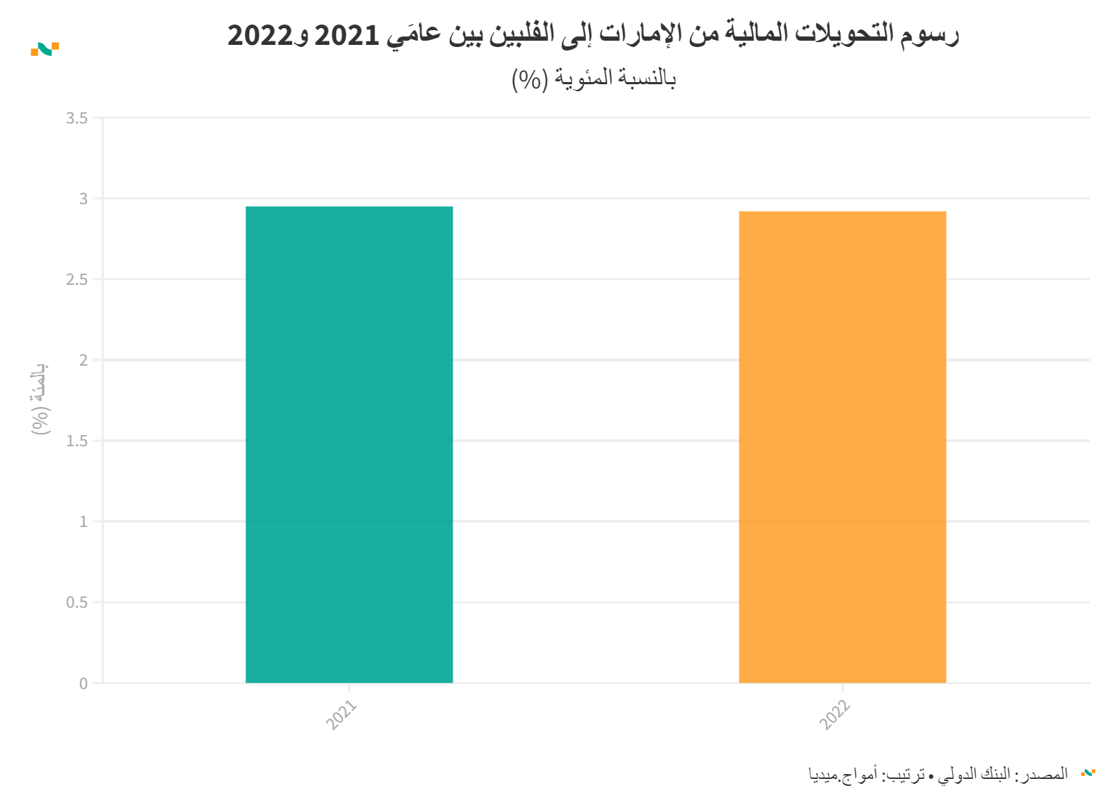 رسوم التحويلات المالية من الإمارات إلى الفلبين بين عامَي 2021 و2022