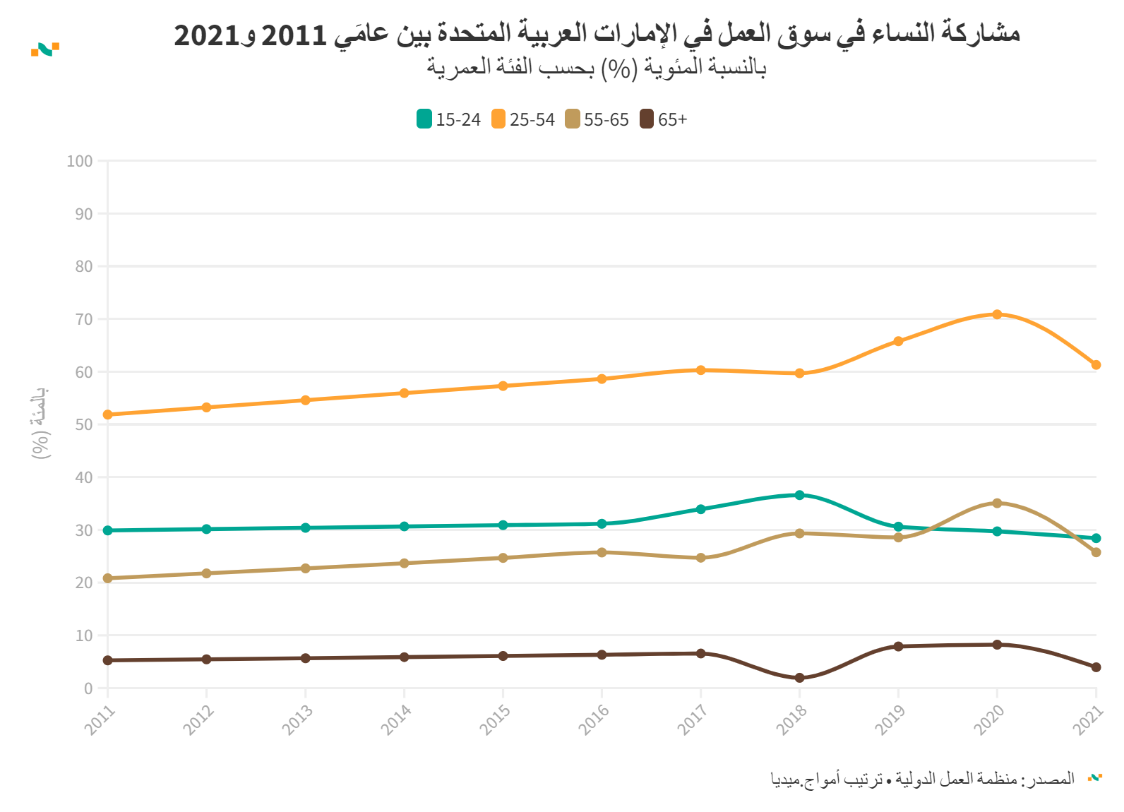 مشاركة النساء في سوق العمل في الإمارات العربية المتحدة بين عامَي 2011 و2021