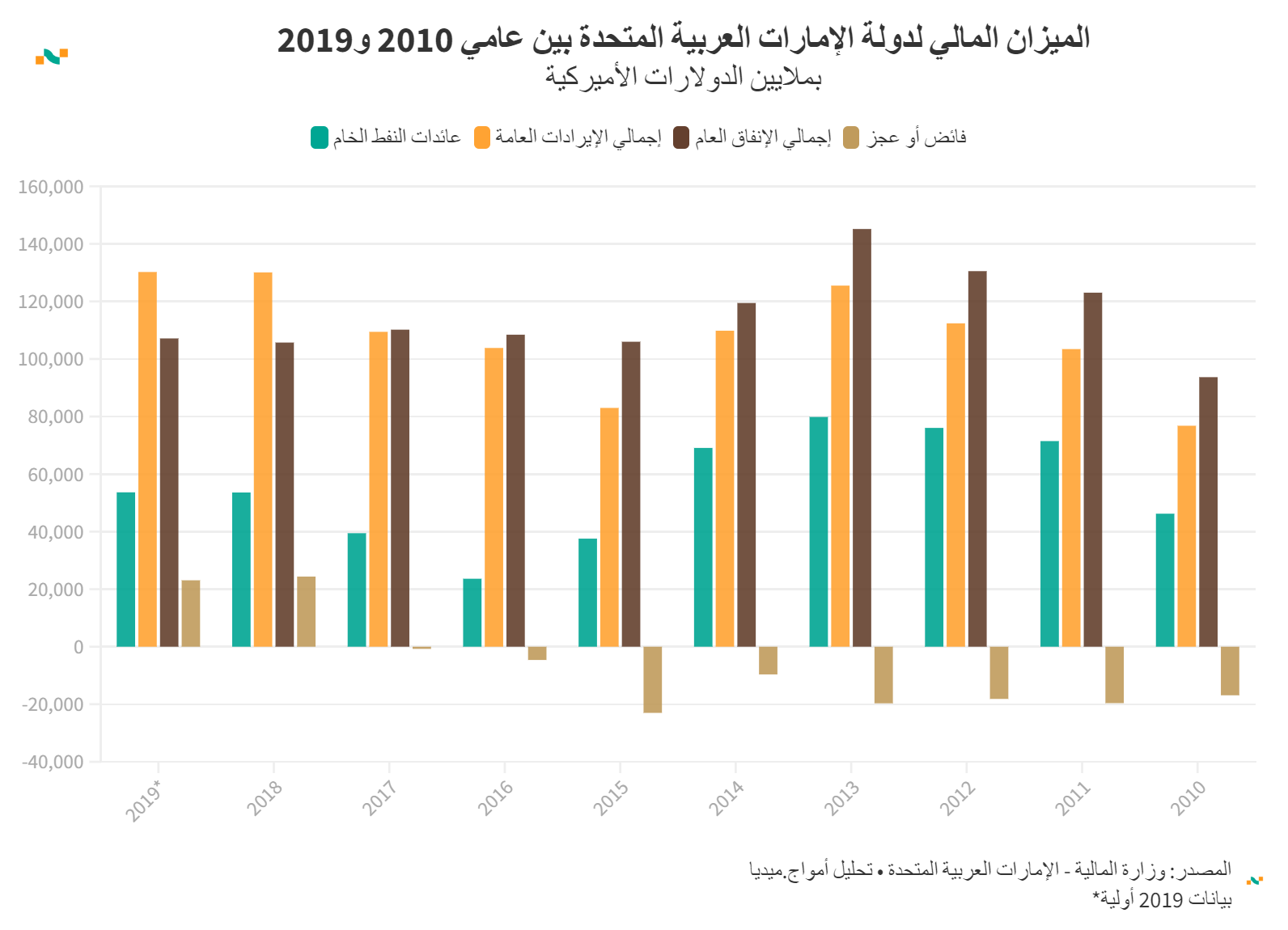 الميزان المالي لدولة الإمارات العربية المتحدة بين عامي 2010 و2019