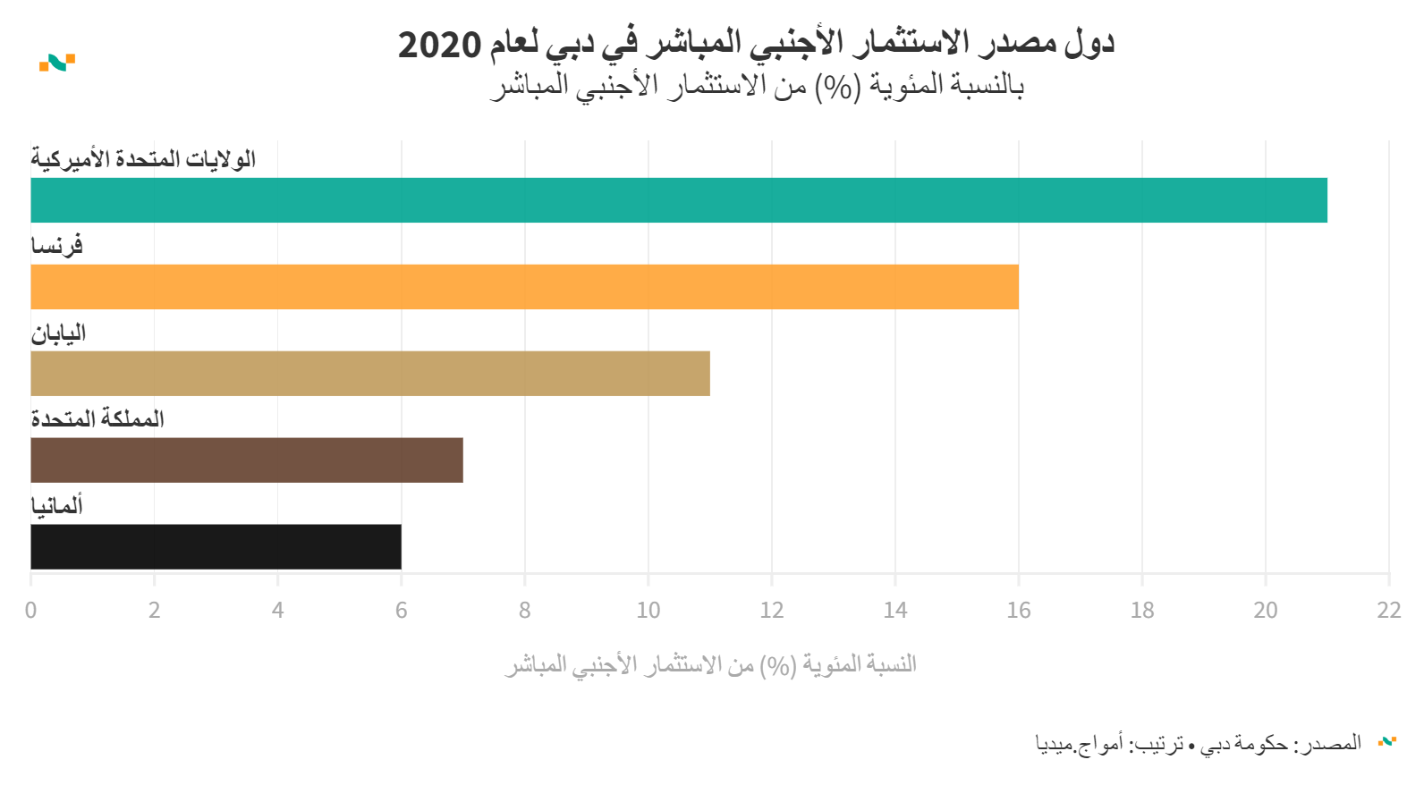 دول مصدر الاستثمار الأجنبي المباشر في دبي لعام 2020