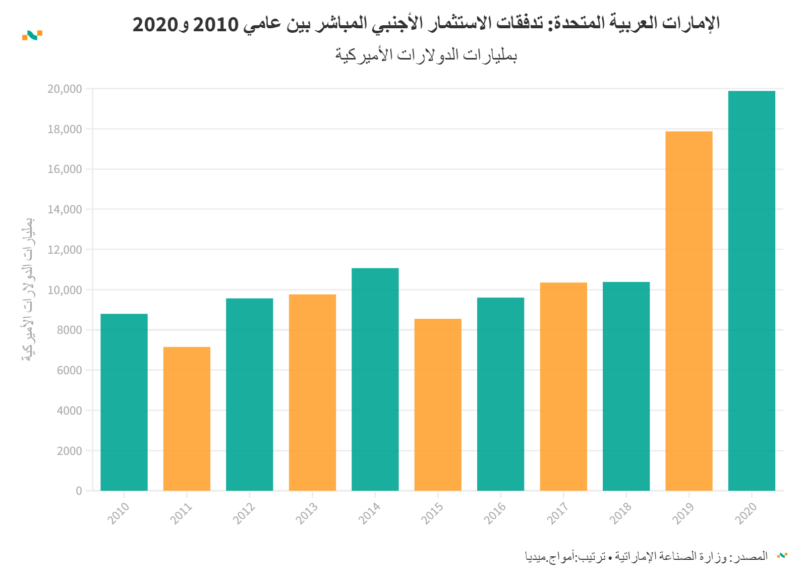 الإمارات العربية المتحدة: تدفقات الاستثمار الأجنبي المباشر بين عامي 2010 و2020