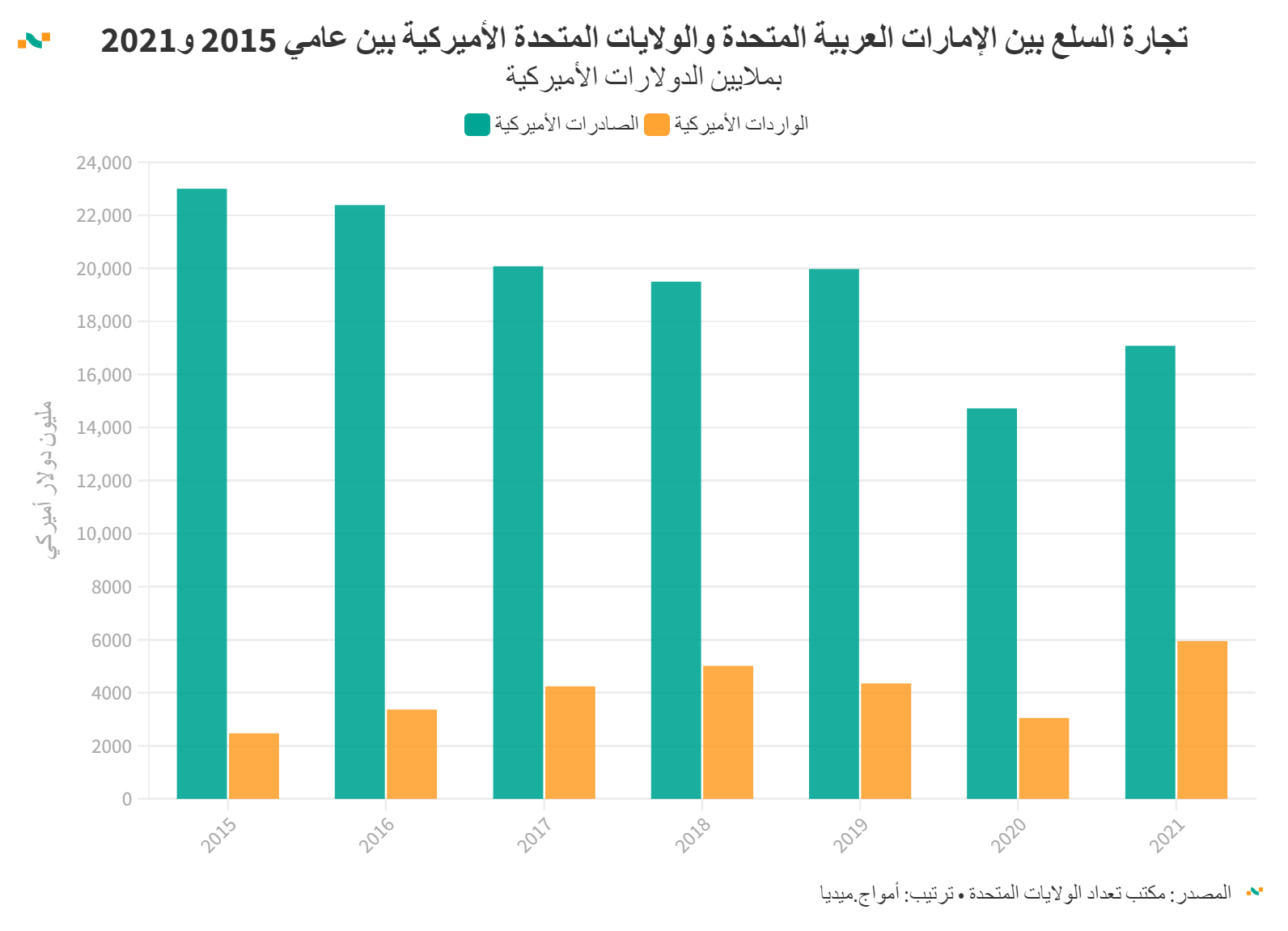 تجارة السلع بين الإمارات العربية المتحدة والولايات المتحدة الأميركية بين عامي 2015 و2021