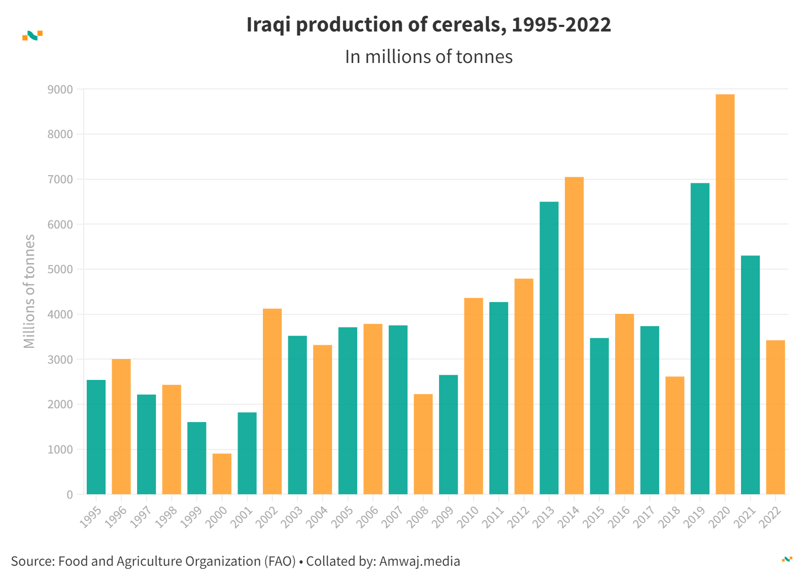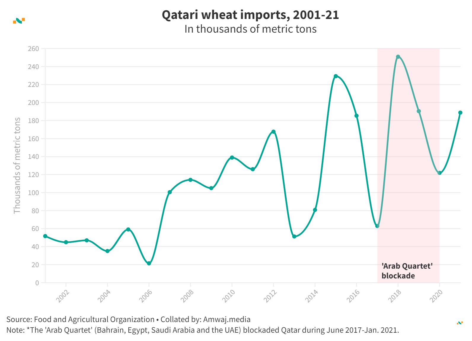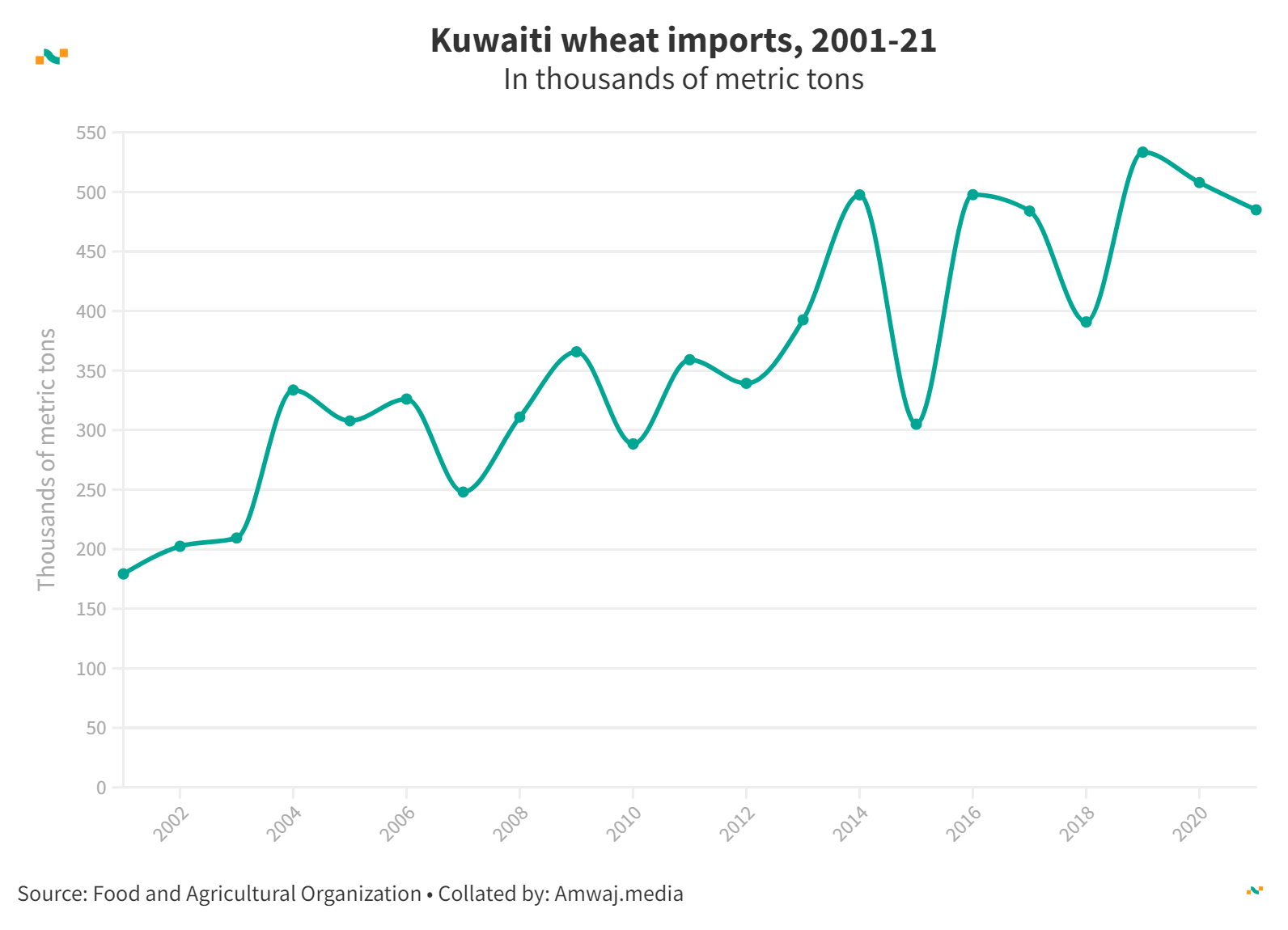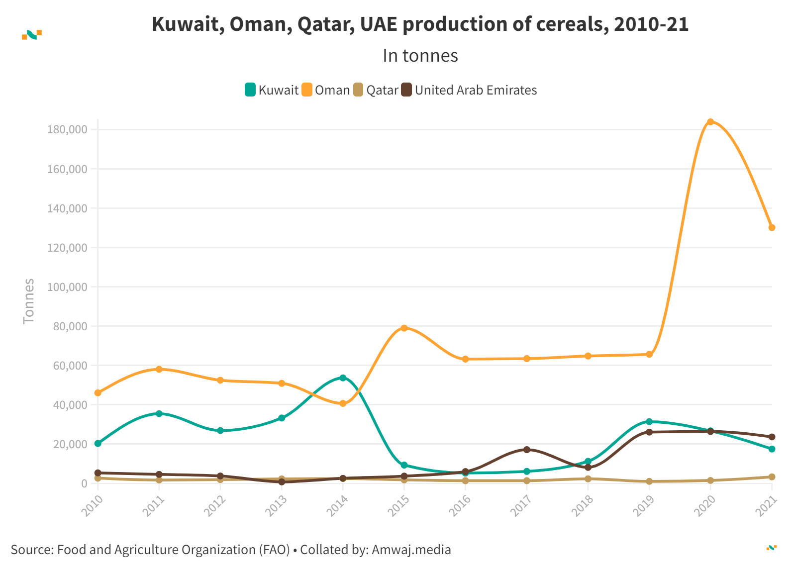 Kuwait, Oman, Qatar, UAE production of cereals, 2010-21