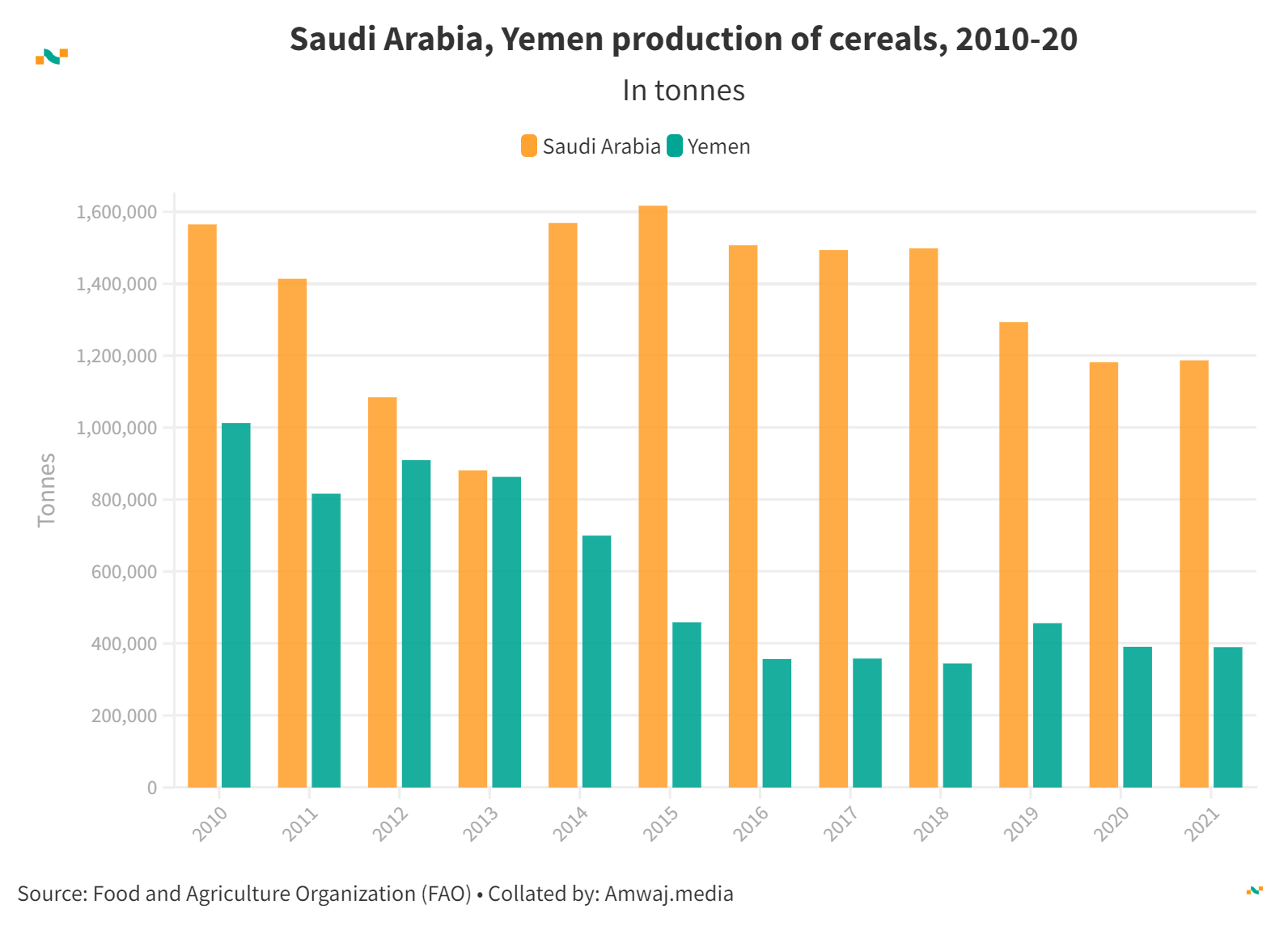Saudi Arabia, Yemen production of cereals, 2010-20