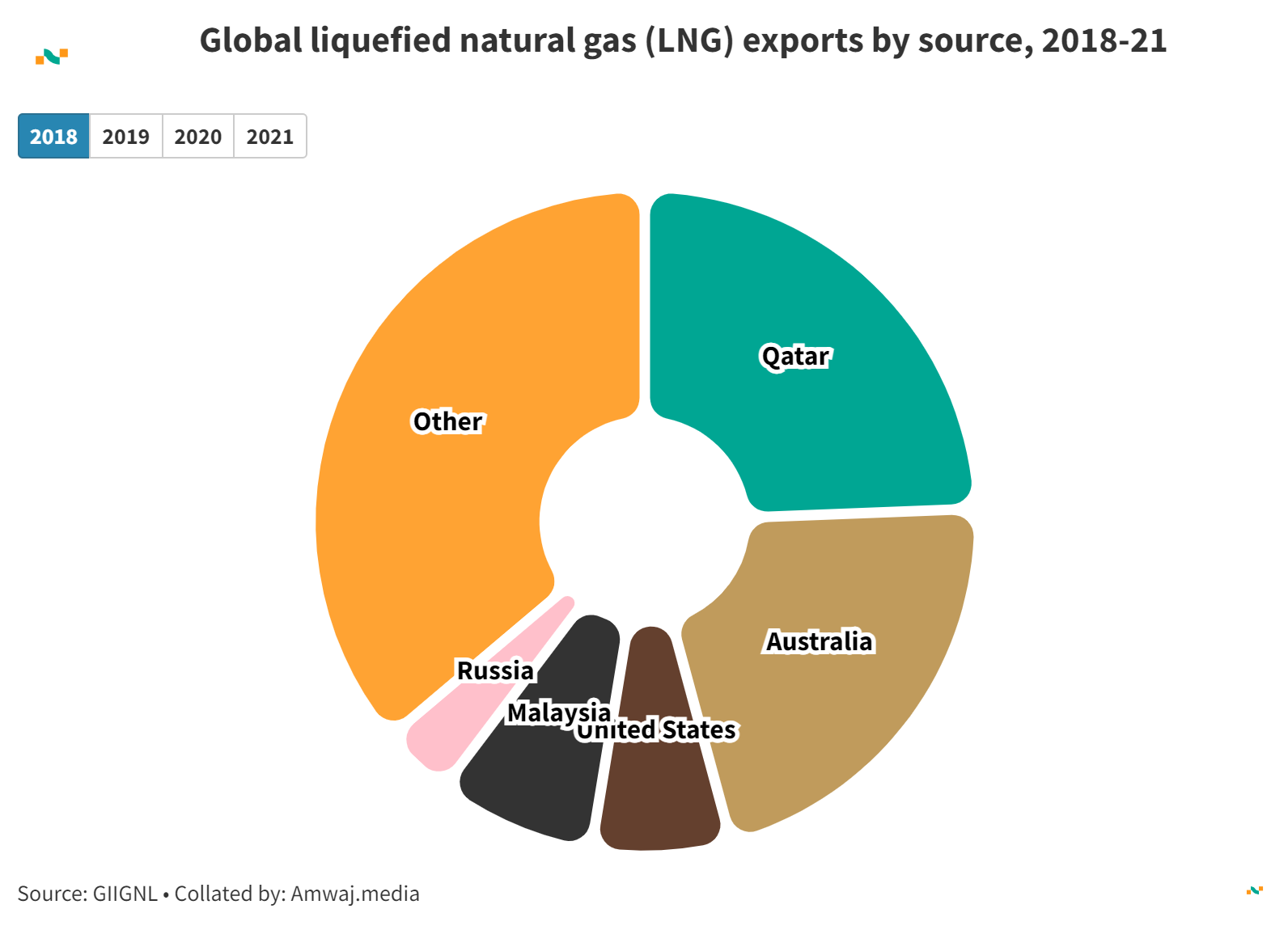 Global liquefied natural gas (LNG) exports by source, 2018-21