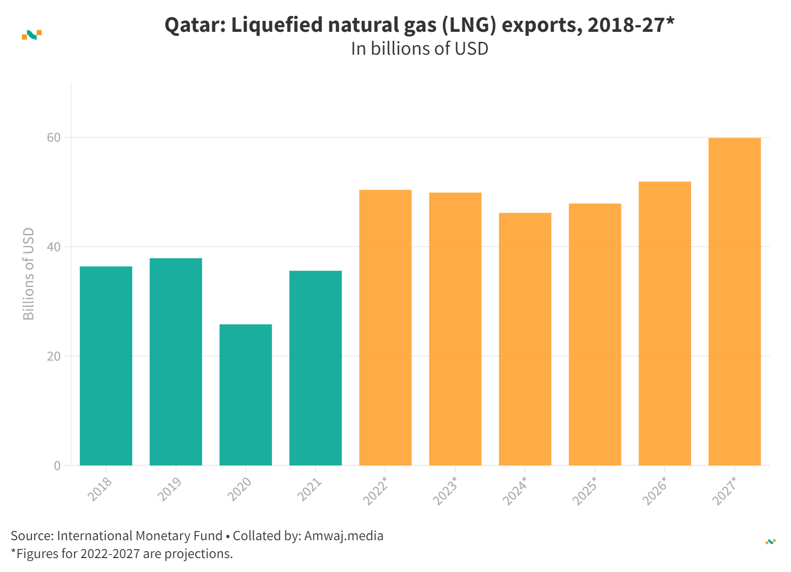 Qatar: Liquefied natural gas (LNG) exports, 2018-27*