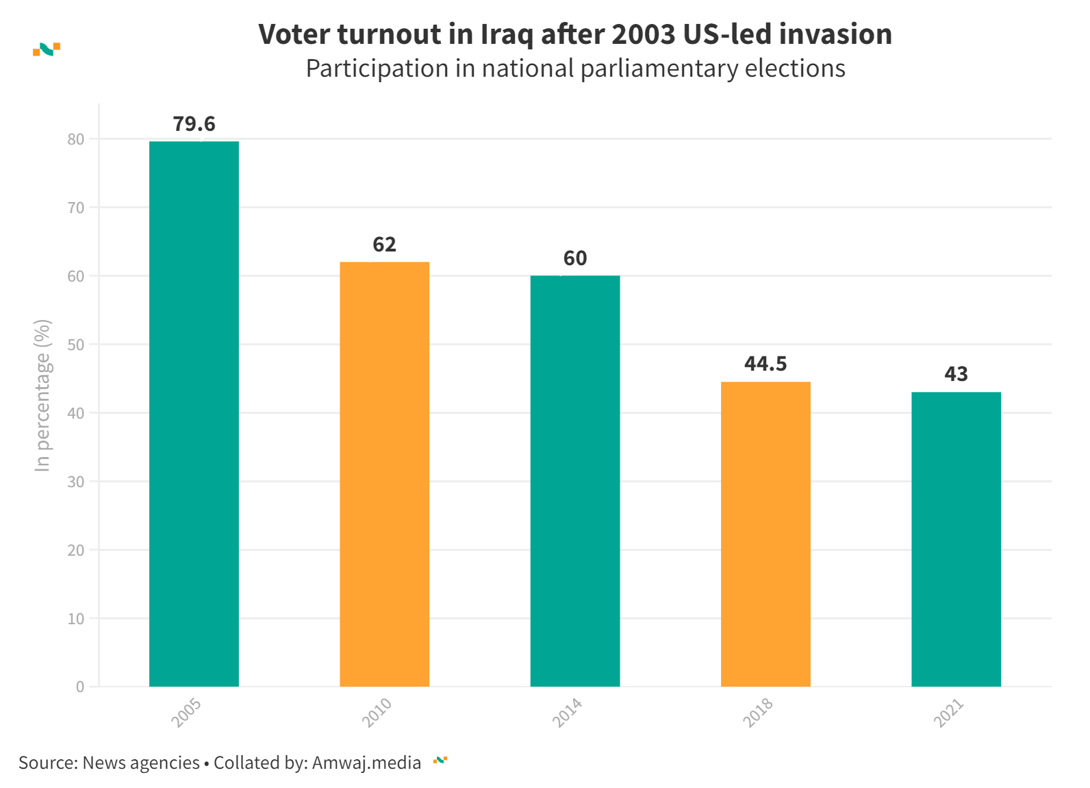 Iraq: Turnout in federal, Kurdish polls, 2005-21