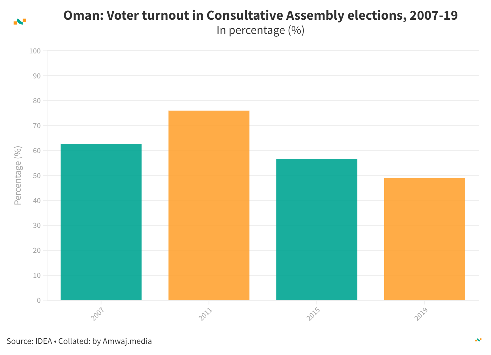 Oman: Voter turnout in Consultative Assembly elections, 2007-19