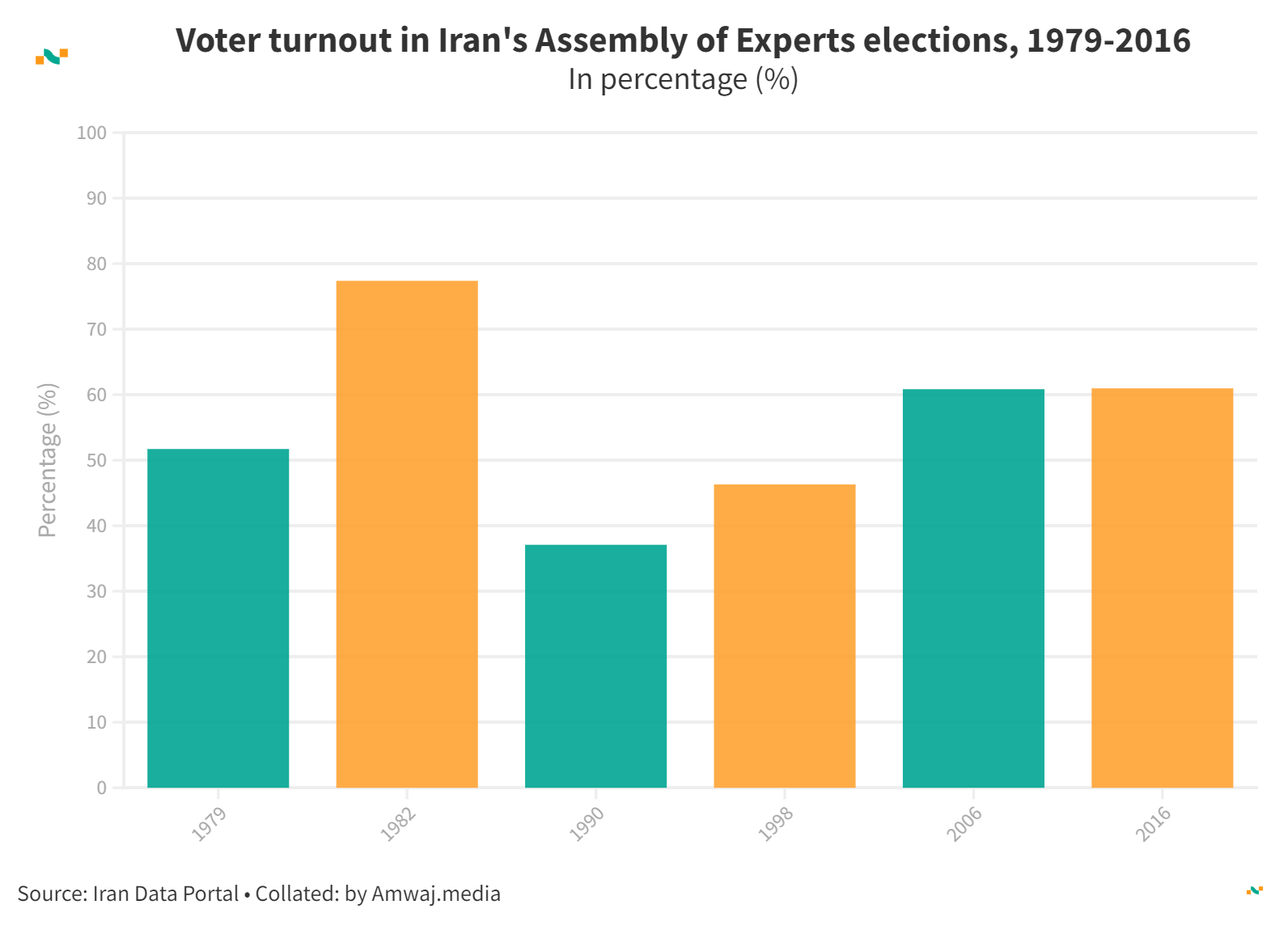 Voter turnout in Iran's Assembly of Experts elections, 1979-2016