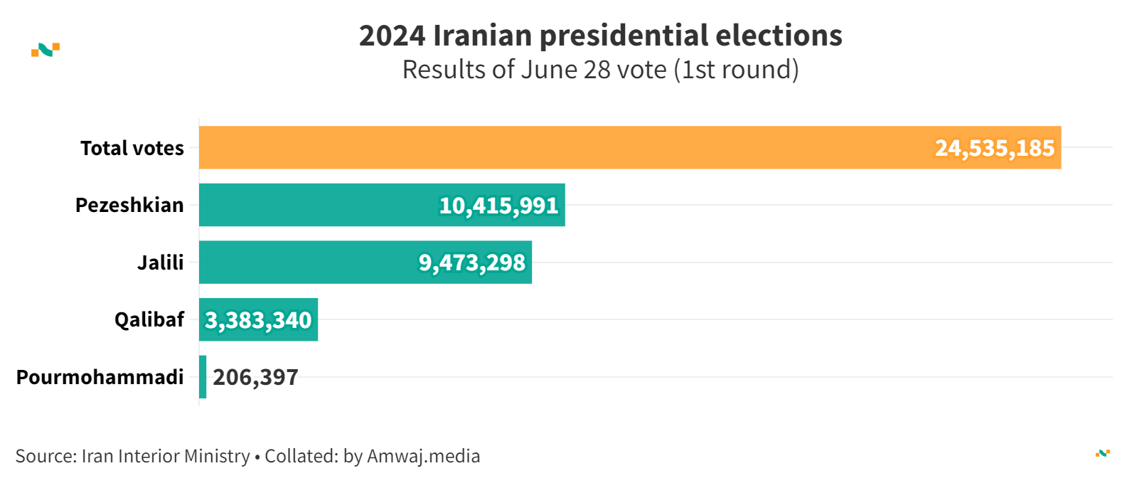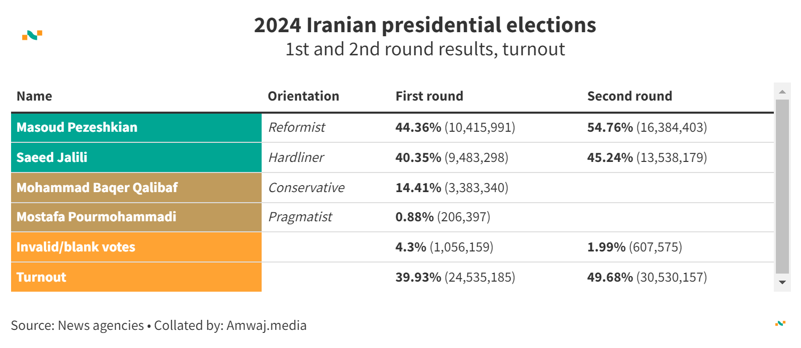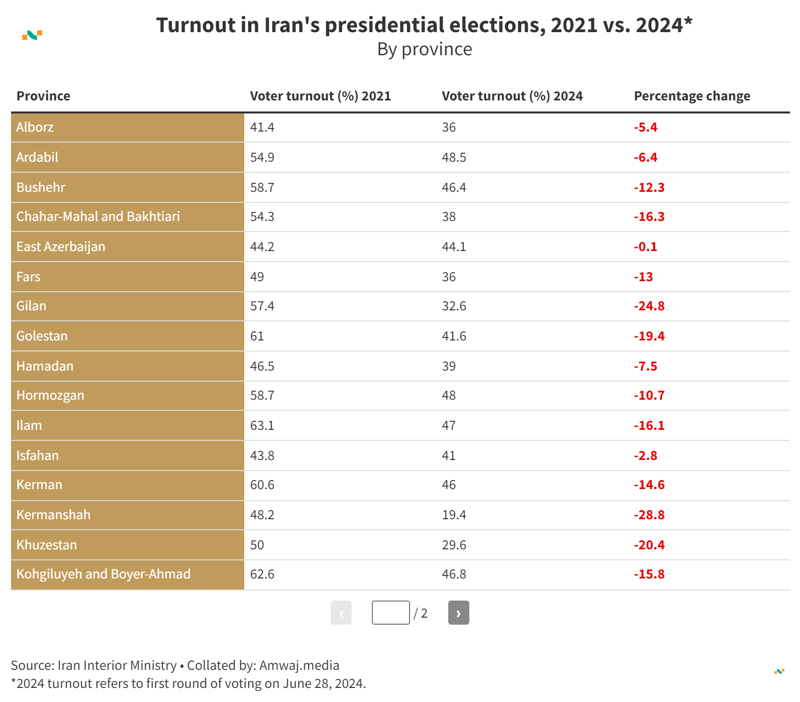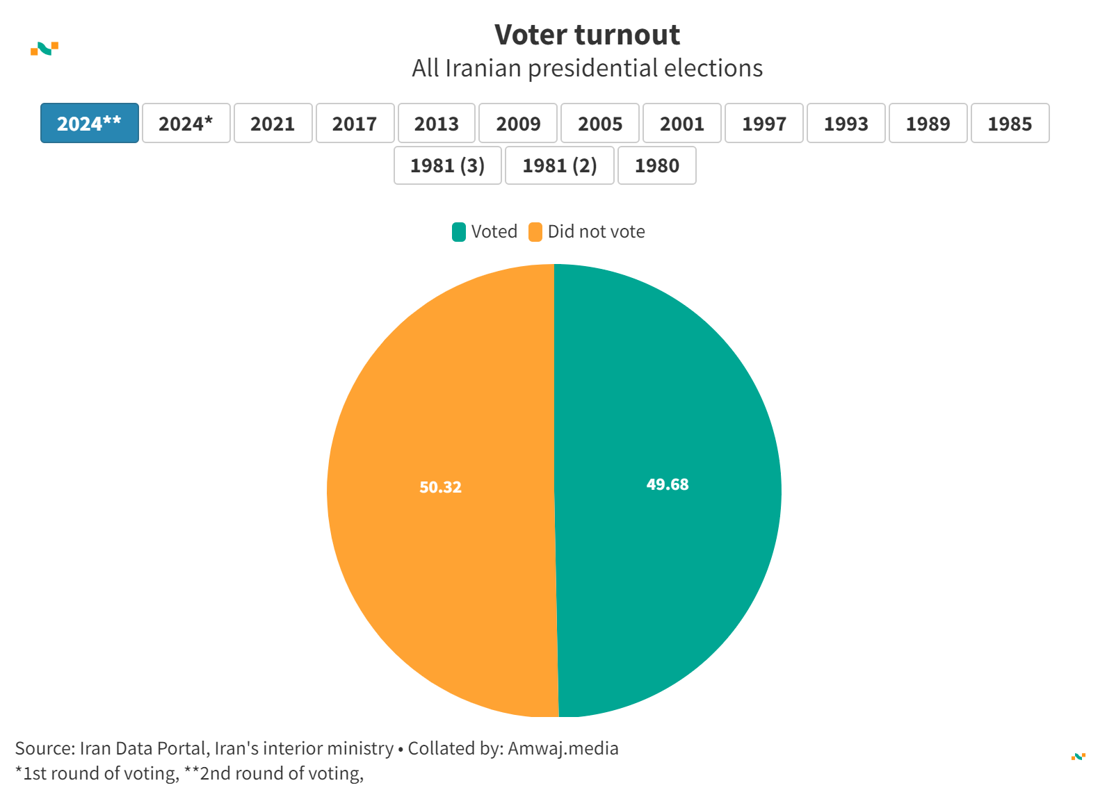 Turnout in Iran's presidential elections, 2021 vs. 2024*