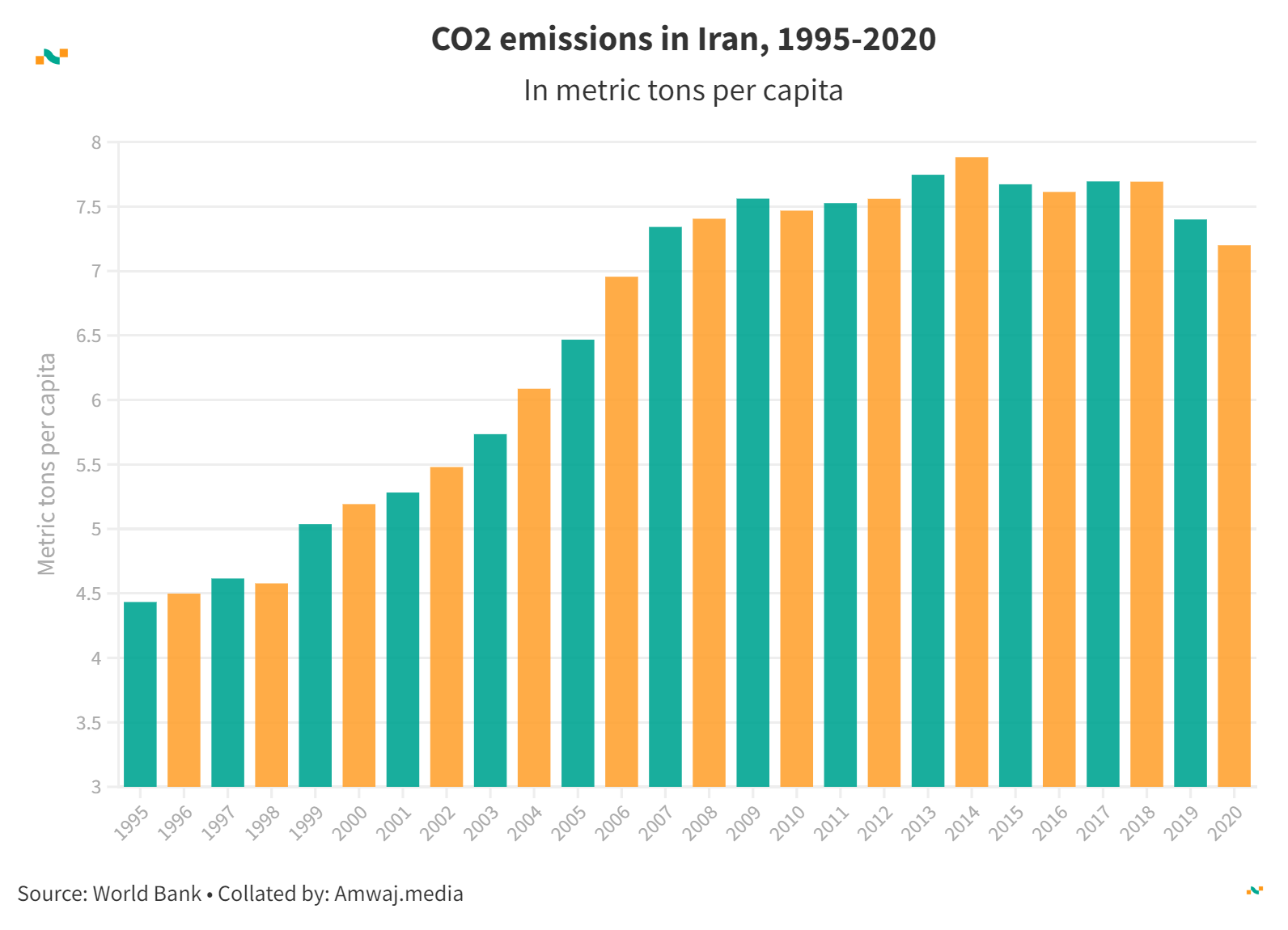 CO2 emissions in Iran, 1995-2020