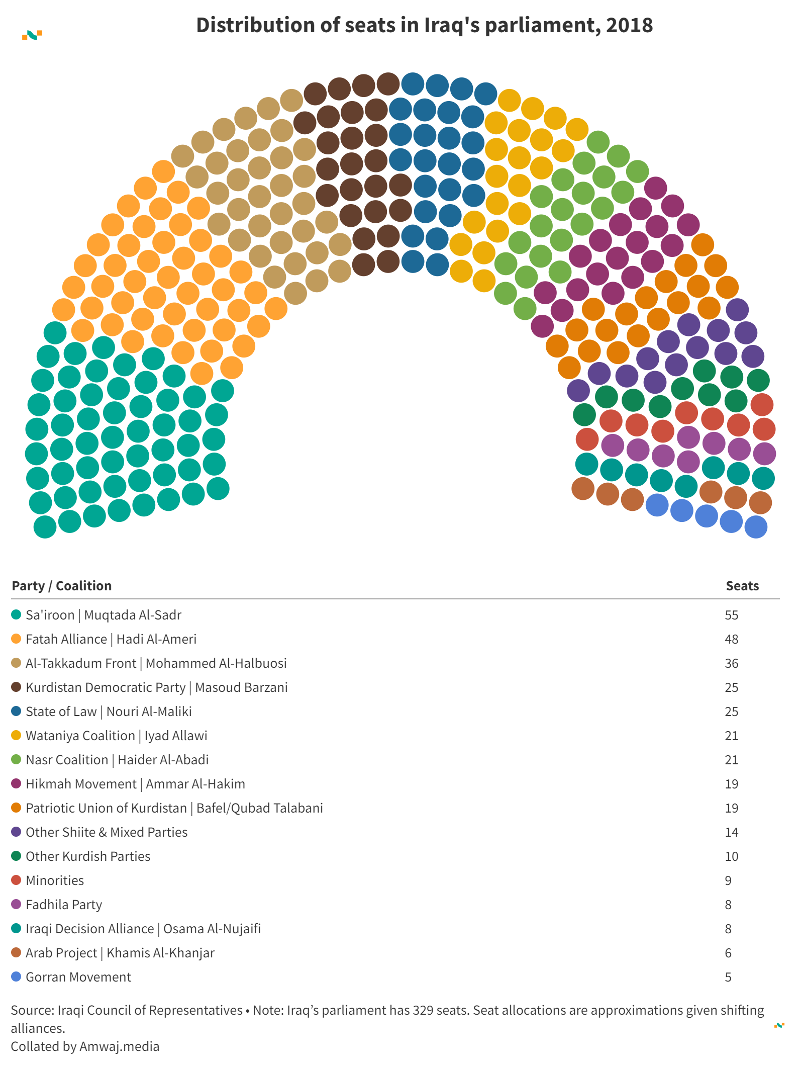Distribution of seats in Iraq's parliament, 2018