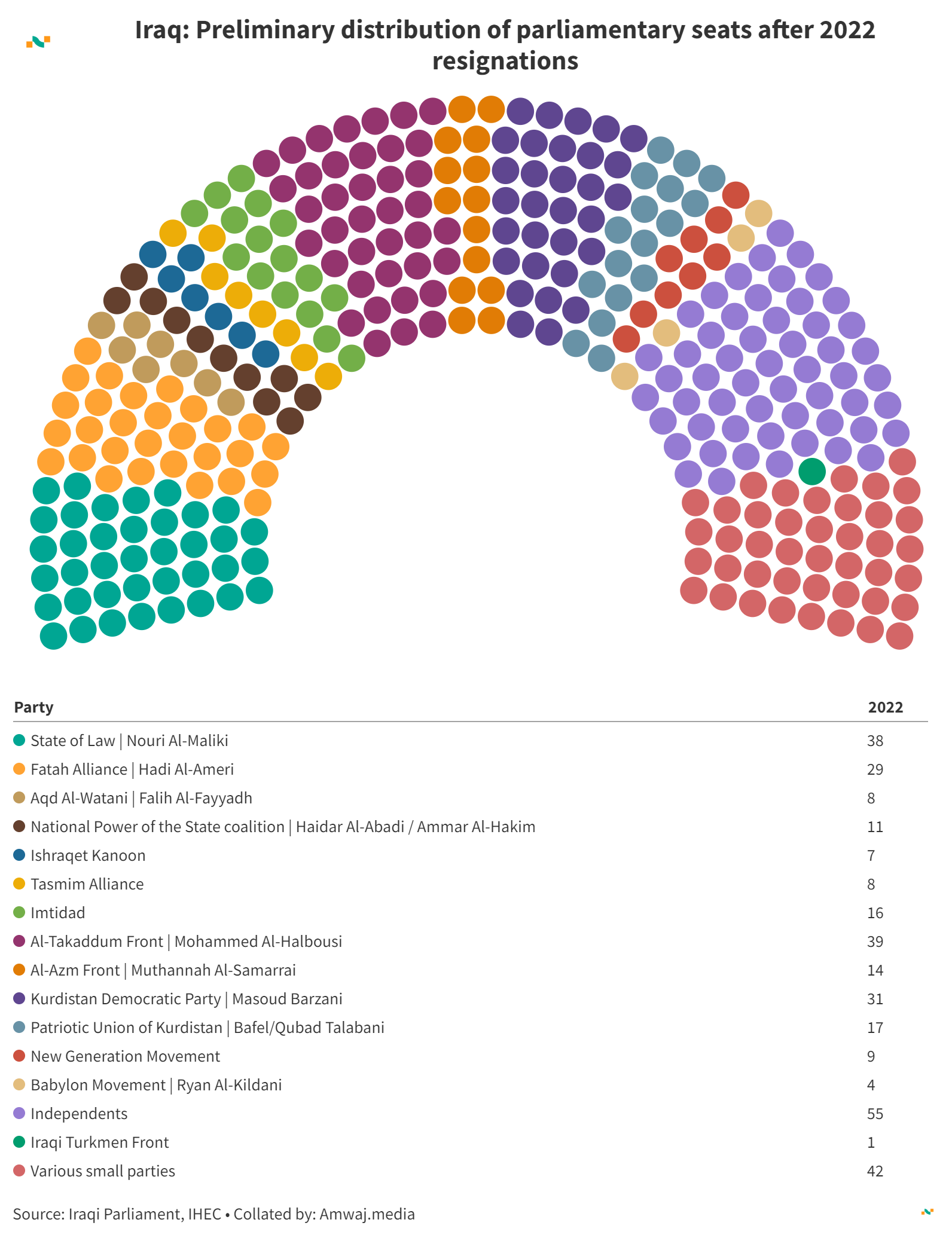 Iraq: Preliminary distribution of parliamentary seats after 2022 resignations
