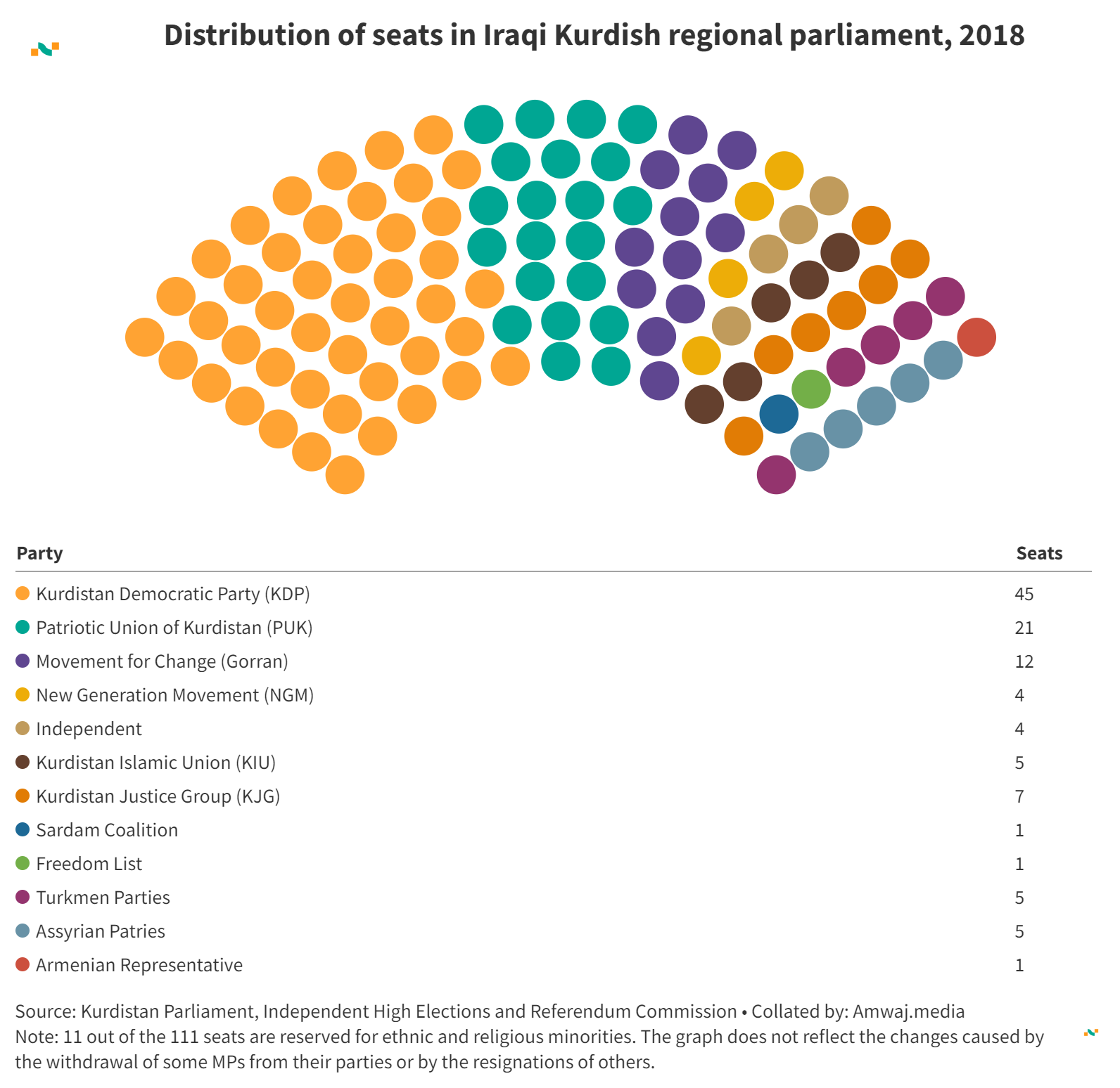 Distribution of seats in Iraqi Kurdish regional parliament, 2018