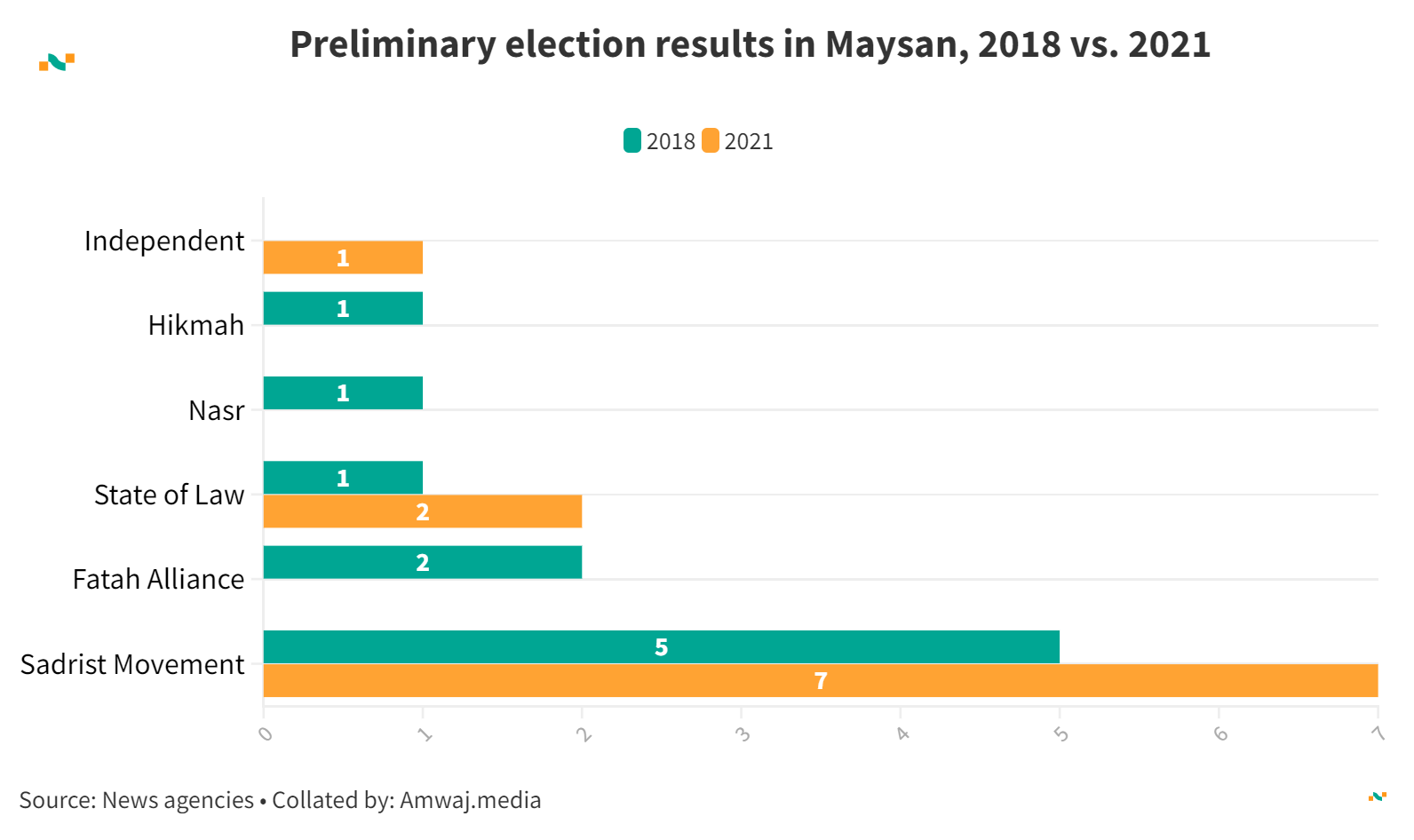 Preliminary election results in Maysan, 2018 vs. 2021